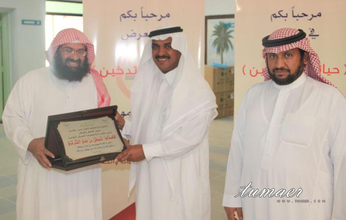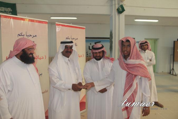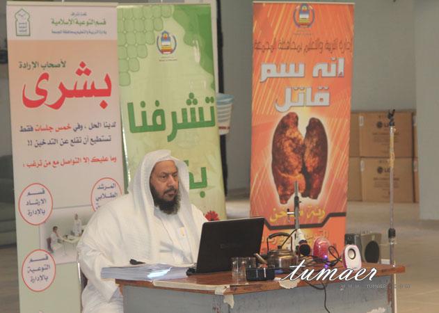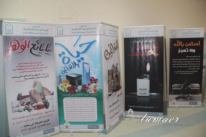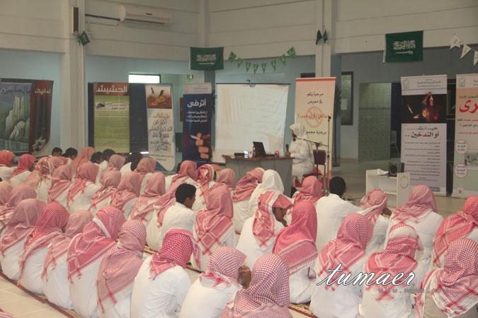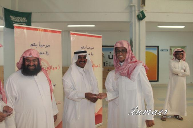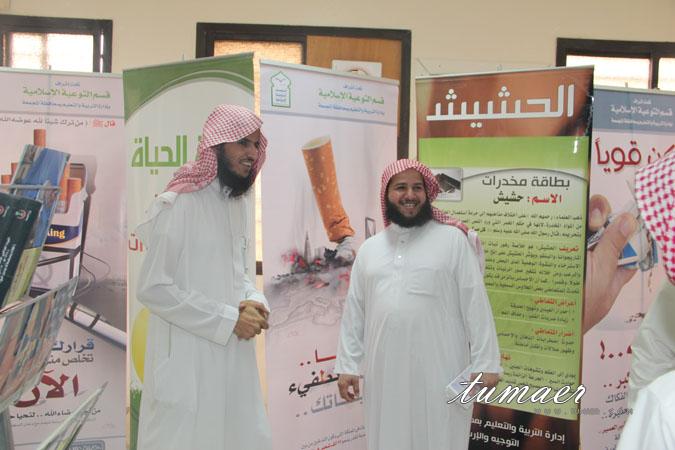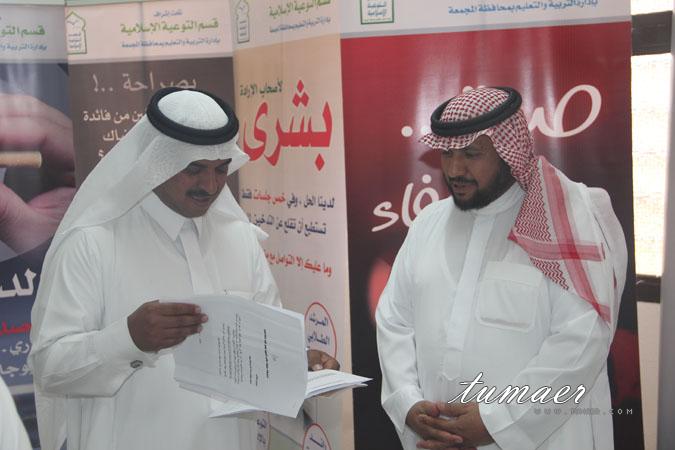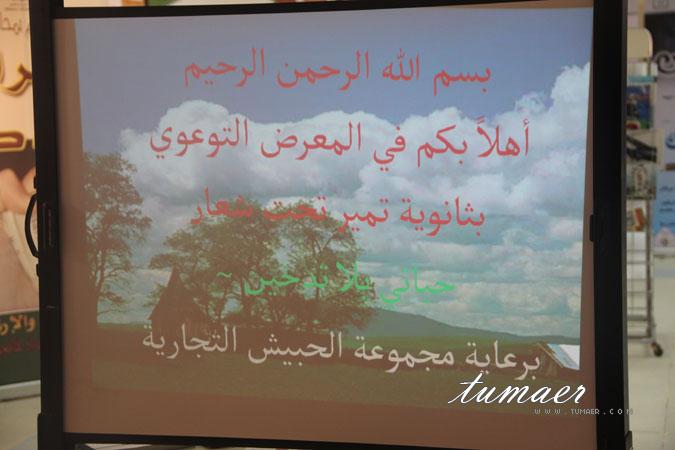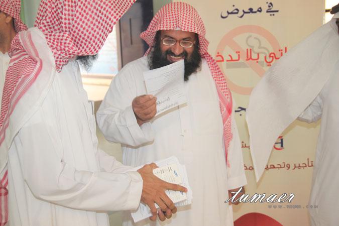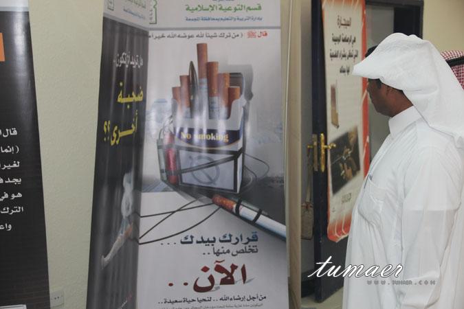 السلام عليكم ورحمة الله وبركاته اختتمت اليوم فعاليات المعرض التوعوي الذي أقيم بثانوية تمير تحت شعار حياتي بلا تدخين وتضمن المعرض العديد من الفعاليات والزيارات  حيث قام الأستاذ حبيش الخرجي صاحب مجموعة الحبيش التجارية بزيارة للمعرض وبحضور مدير مكتب التربية والتعليم بتمير الأستاذ عبدالعزيز الفيصل وأقيم برنامج خطابي بهذه المناسبة ثم توزيع الجوائز لمسابقة التدخين المقامة مُسبقاً وفي اليوم التالي أقيمت محاضرة عن التدخين ألقاها الدكتور عبدالوهاب البرغش وفي اليوم الأخير للمعرض استقبل رائد التوعية الإسلامية الأستاذ سلطان المنيع الزوار وكان منهم ومن ضمن الزوار طلاب مدرسة صلاح الدين ونترككم مع الصور ختاماً نشكر كل من سآهم في نجاح هذا المعرض التوعوي  |