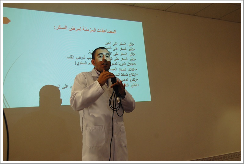 العلاقات العامة والإعلام الصحي نفذت جمعية السكري السعودية الخيرية برنامج التوعية والتثقيف الصحي عن داء السكري بمستشفى تمير العام ممثلة بقسم التوعية الصحية والعلاقات العامة والإعلام الصحي , وذلك بحضور مدير مستشفى تمير العام الأستاذ بجاد الحمراني ورئيس مجلس إدارة جمعية السكري السعودية الخيرية الأستاذ عبدالعزيز الحميدي , حيث أقيمت عدد من المحاضرات التوعوية حاضر فيها عدد من المختصين حول التغذية والسكري, وطرق الوقاية والعلاج , وكيفية التعامل الشخص المصاب مع داء السكري . وقد صاحب هذا البرنامج عدة فعاليات حيث تم عمل قياس السكر بالدم لجميع الحضور, كما تم توزيع عدد من الأجهزة للأفراد المصابين إضافة إلى شرح عن مهام وأهداف الجمعية وتوزيع الكتيبات والمطويات المختصة بداء السكري وأنواعه ومضاعفاته وكيفية التعايش معه وتقديم النصائح والإرشادات الطبية. وفي ختام البرنامج قام مدير مستشفى تمير بتقديم درع تذكاري لجمعية السكري السعودية الخيرية . .. .. |