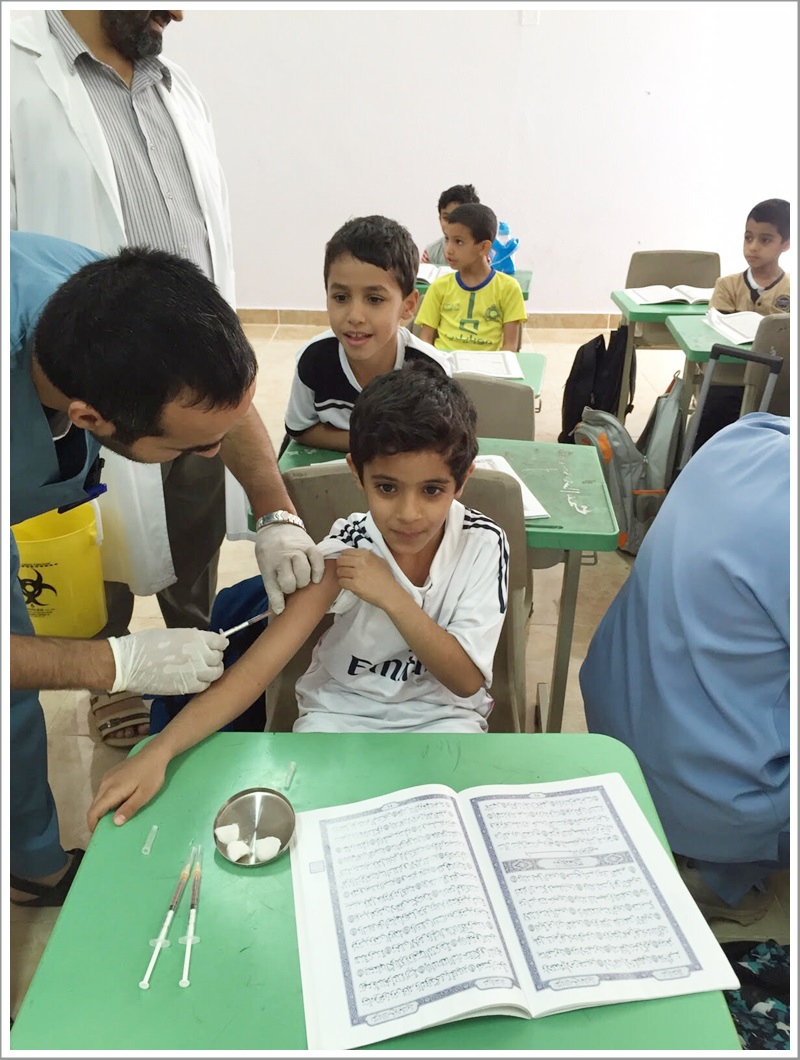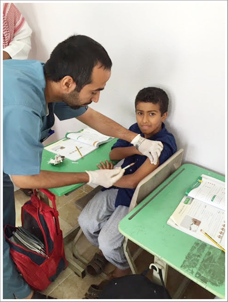 انطلقت صباح اليوم الاثنين6 / 1 / 1437هـ بمدينة تمير الحملة الوطنية للتطعيم ضد الحصبة والحصبة الألمانية والنكاف ، التي تستمر لمدة أربعة أسابيع لتطعيم طلاب وطالبات المرحلة الأبتدائية في جميع المدارس الابتدائية ومدارس تحفيظ القرآن الكريم بتمير , والتي ينفذها مركز صحي تمير بحي العزيزية والتي تستهدف أكثر من 2750 طالب وطالبة بلقاحات الثلاثي الفيروسي (MMR) والثلاثي البكتيري (DTP) وشلل الأطفال الفموي (OPV) بالإضافة إلى اللقاح الجديري المائي (العنقز) .