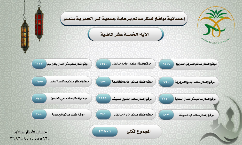 نقدم بين يديكم إحصائية مواقع التفطير التي تدعمها وتشرف عليها الجمعيه