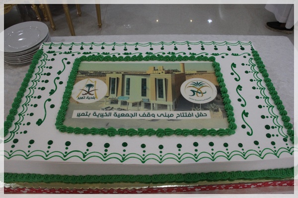 في البداية تم قص شريط إفتتاح المبنى وكذلك قطع التورتة التي حملت شعار جمعية البر بتمير وشعار بلدية تمير