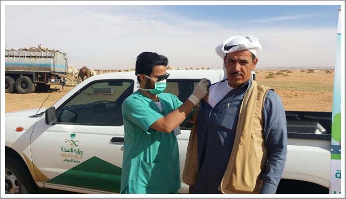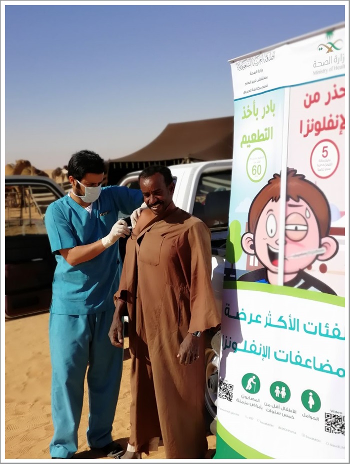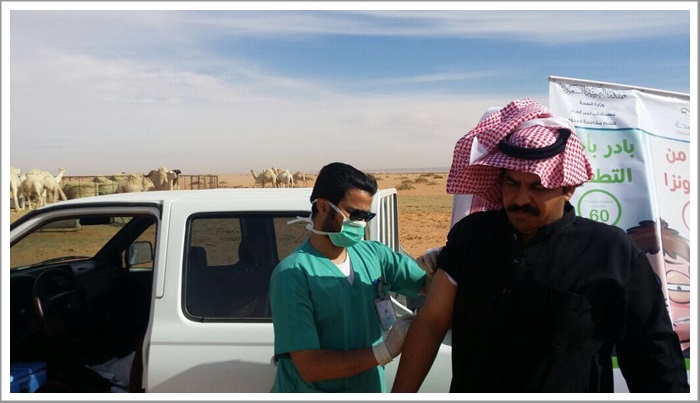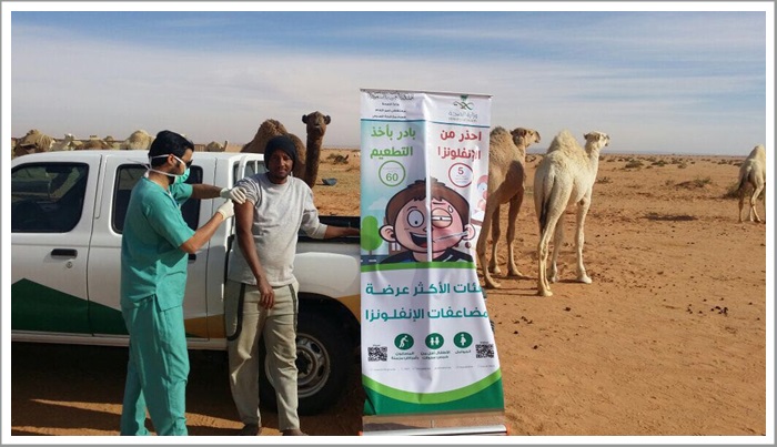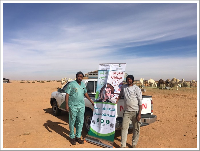 13 قسم مكافحة العدوى بمستشفى تمير العام يقوم بحملة تطعيم ضد الانفلونزا الموسمية لملاك ورعاة الإبل المشاركين في مهرجان الملك عبدالعزيز للإبل لعام 1439هـ
