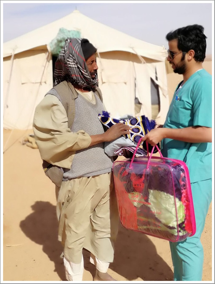 أقام قسم مكافحة العدوى بمستشفى تمير العام وبالتعاون مع فرع وزارة الزراعة بتمير بحملة تطعيم ضد الانفلونزا الموسمية لملاك ورعاة الإبل المشاركين في مهرجان الملك عبدالعزيز للإبل لعام ١٤٣٩هـ حيث تم توعيتهم ضد فيروس كورونا ومن المبادرات الإنسانية المقدمة تم توزيع الكسوة الشتوية للرعاة .
