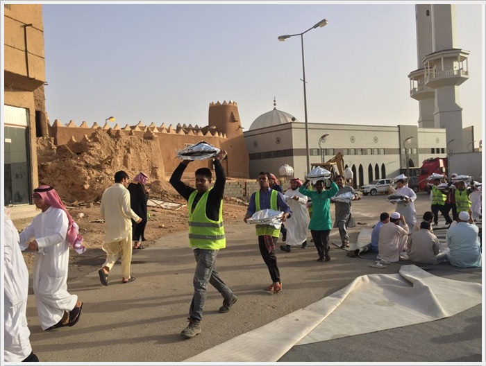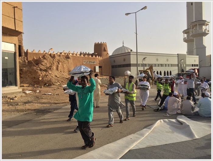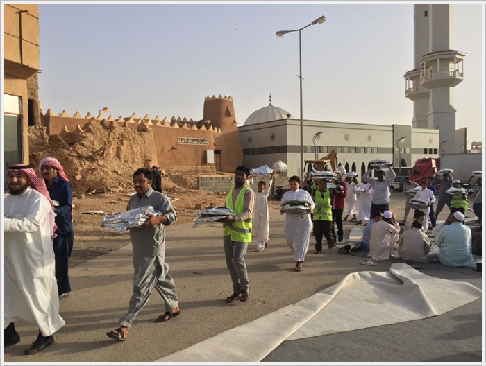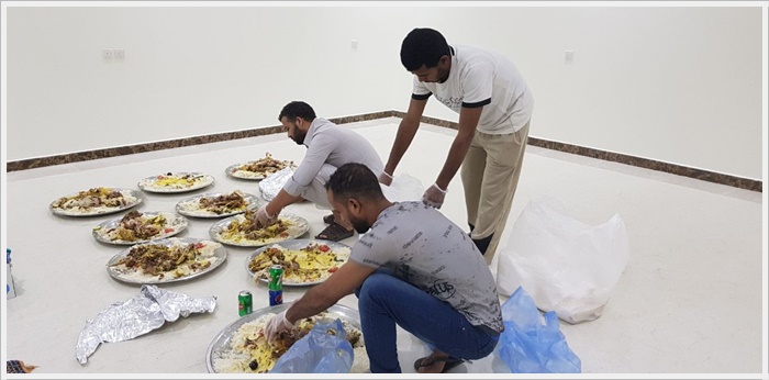 إلى تناول طعام الافطار والذي شمل الأرز ومرق اللحم والعصيرات والماء