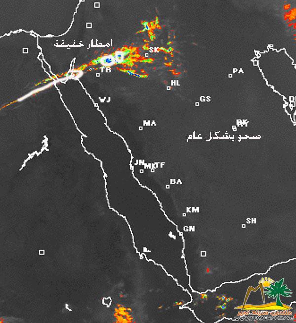 05-27-1434 07:35 AM عاجل - ( واس ) توقّعت الرئاسة العامة للأرصاد وحماية البيئة في تقريرها عن حالة الطقس اليوم ـ بمشيئة الله تعالى ـ تحسن في مدى الرؤية الأفقية على شرق ووسط المملكة فيما تتأثر أجزاء من شمال غرب المملكة برؤية غير جيدة بسبب الأتربة تشمل منطقة ( تبوك والجوف ). كما توقّع التقرير سماء صحو بوجه عام عدا ظهور تشكيلات السحب على المرتفعات الجنوبية والغربية. وحدّد التقرير حركة الرياح السطحية على البحر الأحمر بأنها ستكون شمالية غربية الى غربية بسرعة 15 – 35 كم/ساعة ، وارتفاع الموج من متر إلى متر ونصف , وحالة البحر خفيف إلى متوسط الموج ، بينما تكون على الخليج العربي شمالية غربية إلى شمالية بسرعة 15 – 35 كم/ساعة ، وارتفاع الموج من نصف متر الى متر ونصف ، وحالة البحر خفيف إلى متوسط الموج |