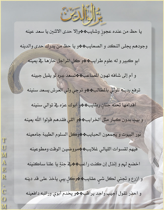 ولا تتوهم أن الذين يقفون عند السفح هم الأقزام قال الله تعالى ( وَلا تُصَعِّرْ خَدَّكَ لِلنَّاسِ وَلا تَمْشِ فِي الأرْضِ مَرَحًا إِنَّ اللَّهَ لا يُحِبُّ كُلَّ مُخْتَالٍ فَخُورٍ(18) ولقد سئل الحسن البصري عن التواضع فقال : التواضع هو أن تخرج من منـزلك ولا تلقى مسلما إلا رأيت له عليك فضلا . الغرور . ورزّة النفـس ماهـو راس مـال التواضـع يرفـع الشخـص ويـزوّد نقـاه والتغطرس سيمـةٍ مـا تسمووهـا الرجـال والكبر وإن صار بالشخص ينقـص مستـواه والتضيعف والتذلـل تـراه اردى الخصـال وعـزّة الرجـال للرجـل شريـان الحيـاه والكمـال لخـالـق الـكـون لله الكـمـال بس درب الطيب فرضٍ مثل فرض الصـلاه والحيـاه شهـور وسنيـن واخـرهـا زوال ومن خسر دينه خسـر كـل شـي بمنتهـاه والحيـاه اعمـال وافعـال يتبعهـا انتـقـال للحيـاه الـلـي بهاالمهلـكـه والا النـجـاه هكـذا الدنيـا قصيـره نـزولٍ وارتـحـال ومن فعل فعـل ٍ ليـا قابـل المولـى لقـاه والضعيف يضيع حقـه ولـو مابـه جـدال والردي ما يكسـب النعـم لـو يرفـع يـداه والبخيل احقر من البخل لـو جالـه مجـال لوكثـر مالـه خسـاره ماهـو ويـا الغنـاه ومن فتر عزمه عن الطايلـه حيـده هيـال ما يسرّ اللي مـن الوقـت واعوانـه نصـاه والرجل يحرص على الطيب حرص بكل حال والرجل وليا خضـع للـردى حتمـاً وطـاه ذي تجارب والتجارب على الموقـف مثـال ومن خذا العبره مع الوقـت يبشـر بالنجـاه |