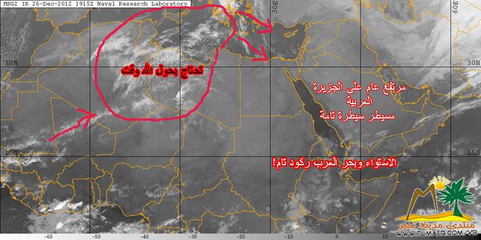 بحول الله تعالى من اليوم وخلال الايام القادمة هناك مرتفع قوي مسيطر سيطرة تامة على الجزيرة العربية .وندخل في فترة الصقيع والرياح الشمالية والعوالق الترابية باسباب الثلوج شمال المملكة روسيا وشمال وهذا طبيعي بحول الله تعالى .