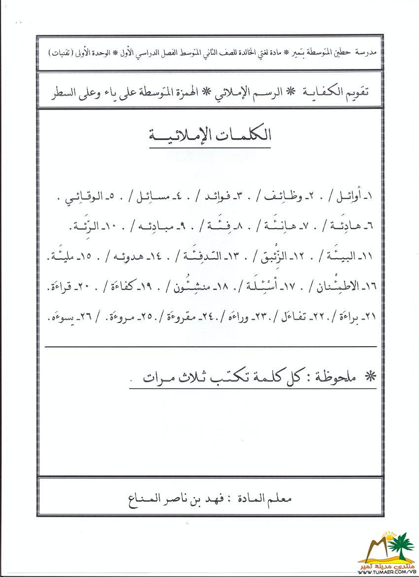 تقويم مادة لغتي الخالدة للصف الثاني المتوسط ( الوحدة الأولى )   للفصل الدراسي الأول ( 1432 ـ 1433 هـ ): أتمنى أن تكون واضحة وميسرة نسعى دائماً لكل ما هو مفيد وشافي بإذن الله ؛ لأجل لغتنا الجميلة والخالدة لـغـــــــــة الـقــرآن الـكــريـــم أخوكم فهد المناع أبو بسام  |