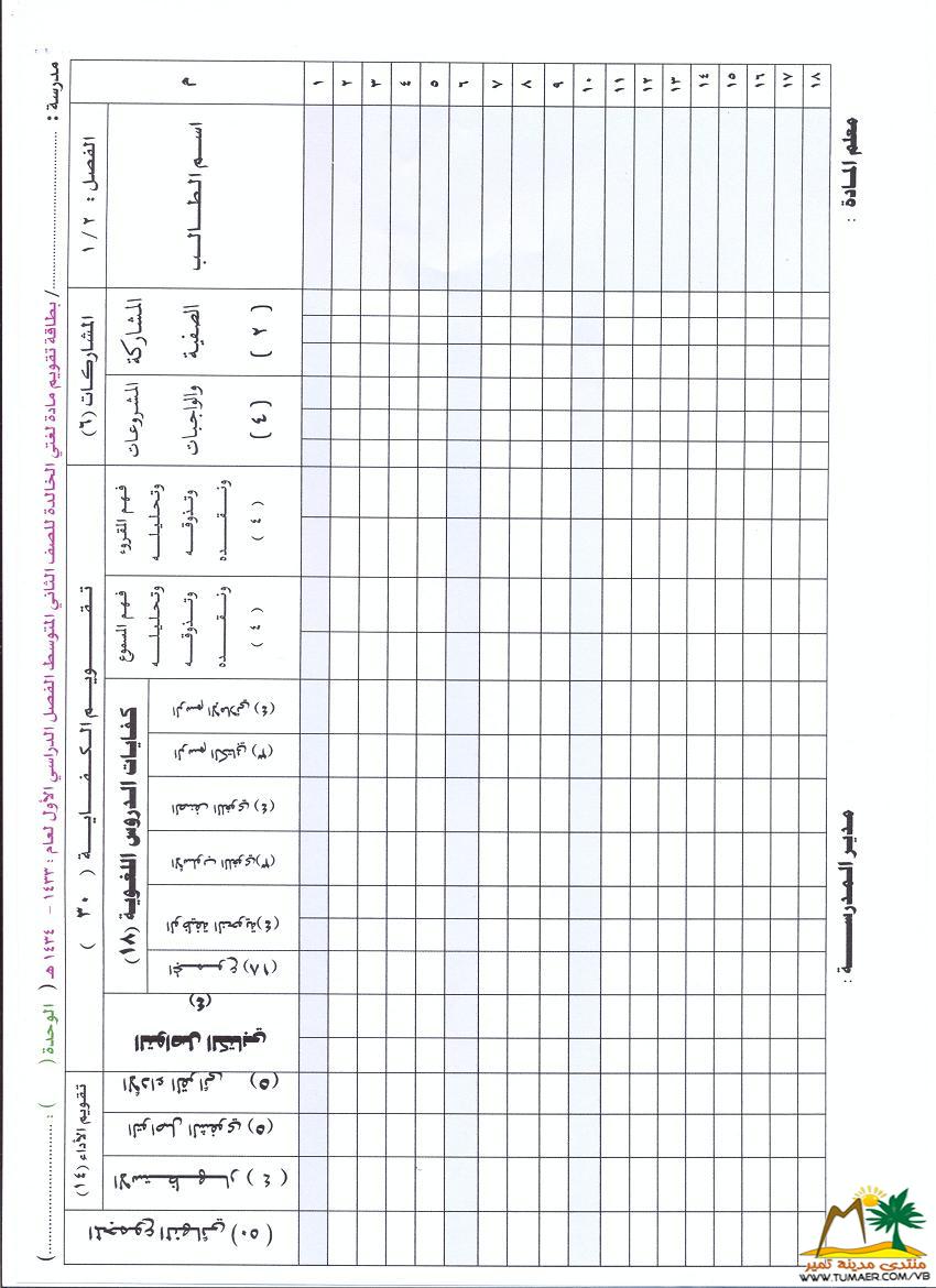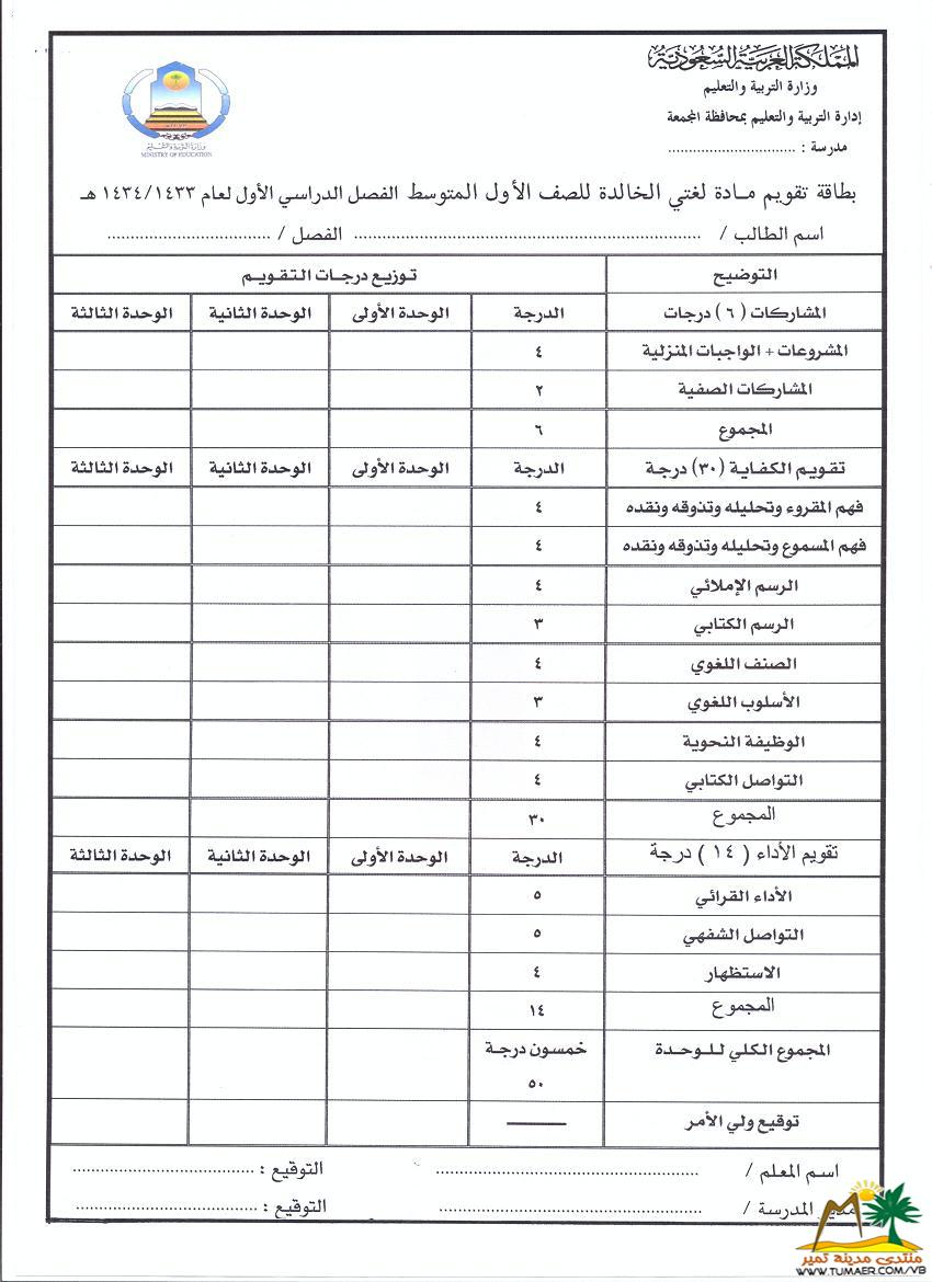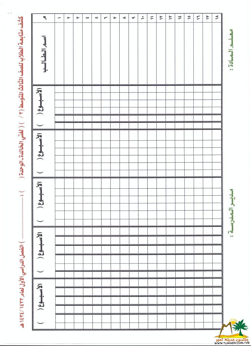 يطيب للمعلم فهد المناع بمدرسة حطين بتمير ويسره أن يقدم سجلات متابعة لمادة لغتي الخـالـدة للمرحلة المتوسطة للفصل الدراسي الأول ( 1433 ـ 1434 هـ ): |