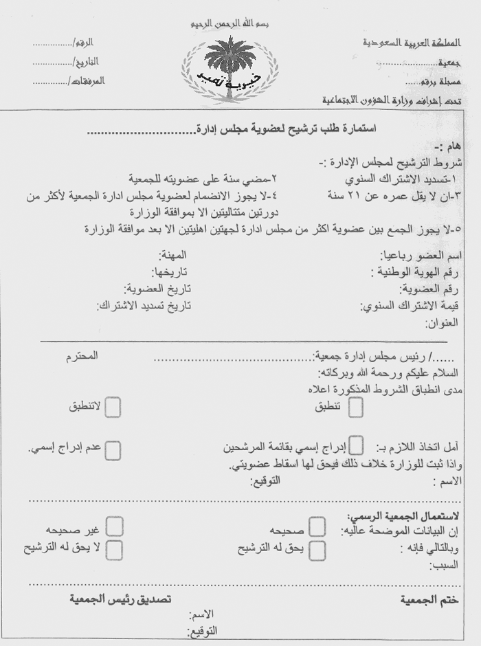 استمارة طلب ترشيح لعضوية مجلس الإدارة