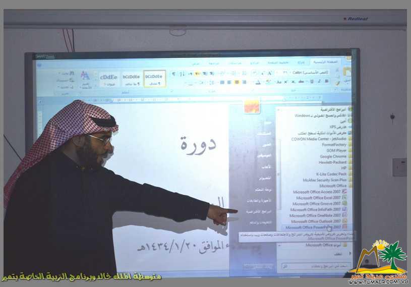 ![]() أقام مركز مصادر التعلم بمتوسطة الملك خالد بتمير دورة تدريبية للطلاب بعنوان "البوربوينت " وقد قام بتنفيذ الدورة امين المصادر الاستاذ/ فلاح بتال السهلي وذلك يوم الثلاثاء الموافق 20-1-1434هـ ويعد ذلك ضمن نشاط مركز مصادر التعلم في المدرسة وتنمية الوعي التقني والمهني للطلاب وتدريبهم على أساليب التعلم المعاصرة واليكم صور منها  |