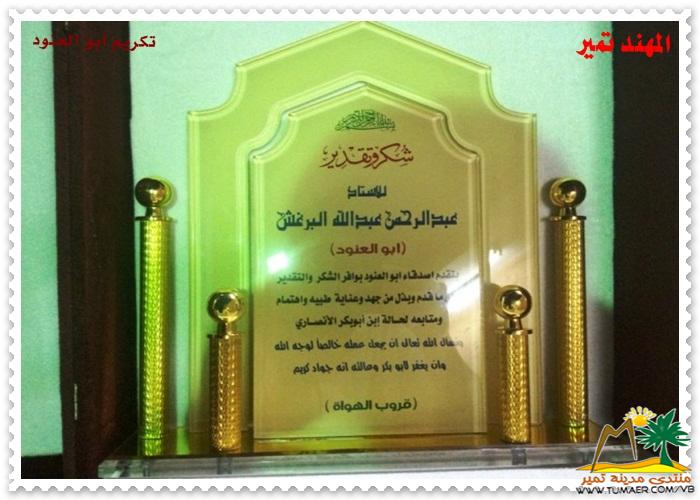 آبآرك لآخي ابوالعنود هذآ التكريم الرآئع الذي حضي به نظرآ لمآ قآم به تجآه أبن ابو بكر الانصآري رحمه الله
