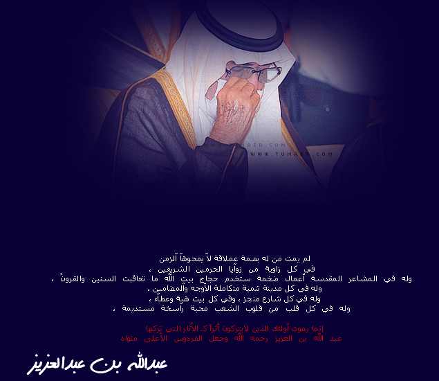ملكنا الذي رحل لم نخسره نحن فقط ؛ بل العالم كله خسر رجل كان يعمل بقلبه و عقله معا على منهج الشريعة رغم كل الفتن التي صعنها الاخرون و سايرها الاخرون الا ان موقف المملكة كان ثابتا و كانت كالجبل الضخم الذي لم تحركه الرياح رحم الله عبدالله ؛ و اعان سلمان و وحد الصف شكرا اختي الوفاء بنت تحياتي |