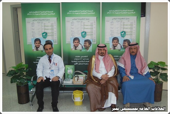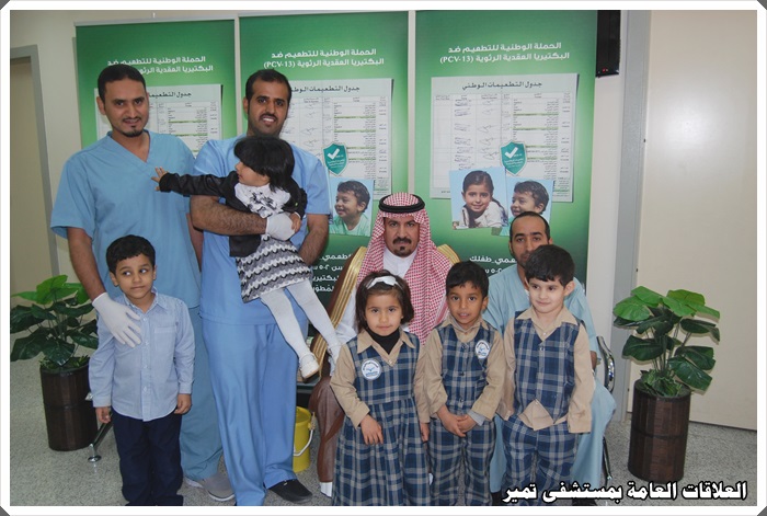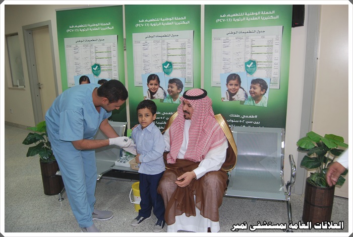 العلاقات العامة بمستشفى تمير    دشن رئيس مركز تمير الأستاذ سلامة السلامة حملة تطعيم الجرعة التكميلية من لقاح البكتيريا العقدية الرئوية و ذلك بمركز صحي تمير بحي العزيزية بحضور مدير مستشفى تمير العام بالنيابة الأستاذ عبدالله المنيع ونائب مدير مركز صحي تمير الأستاذ سعد المنيع والمشرف الإقليمي بالمستشفى الدكتور مصطفى شعيب والمدير الطبي الدكتور محمد الحمود .