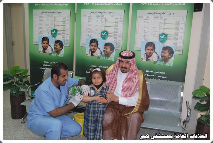 وقد اوضح المشرف الإقليمي بمستشفى تمير العام الدكتور مصطفى شعيب , أن الحملة تستهدف الأطفال بين عمر سنتين إلى خمس سنوات والتي تصل إلى عدد (1149) طفل بالمدينة بجرعة إضافية واحدة من تطعيم (PCV13)، وتؤخذ بصرف النظر عن التطعيمات السابقة فالتطعيم يحمي بإذن الله من تسبب الالتهابات الصدرية المتكررة وتستمر الحملة لمدة 3 أشهر بجميع مراكز الرعاية الصحية الاولية التابعة لمستشفى تمير . .. ..  |