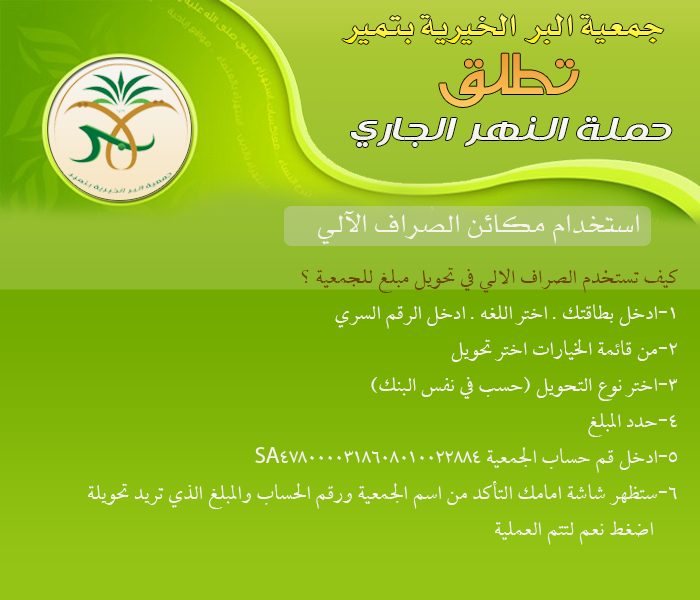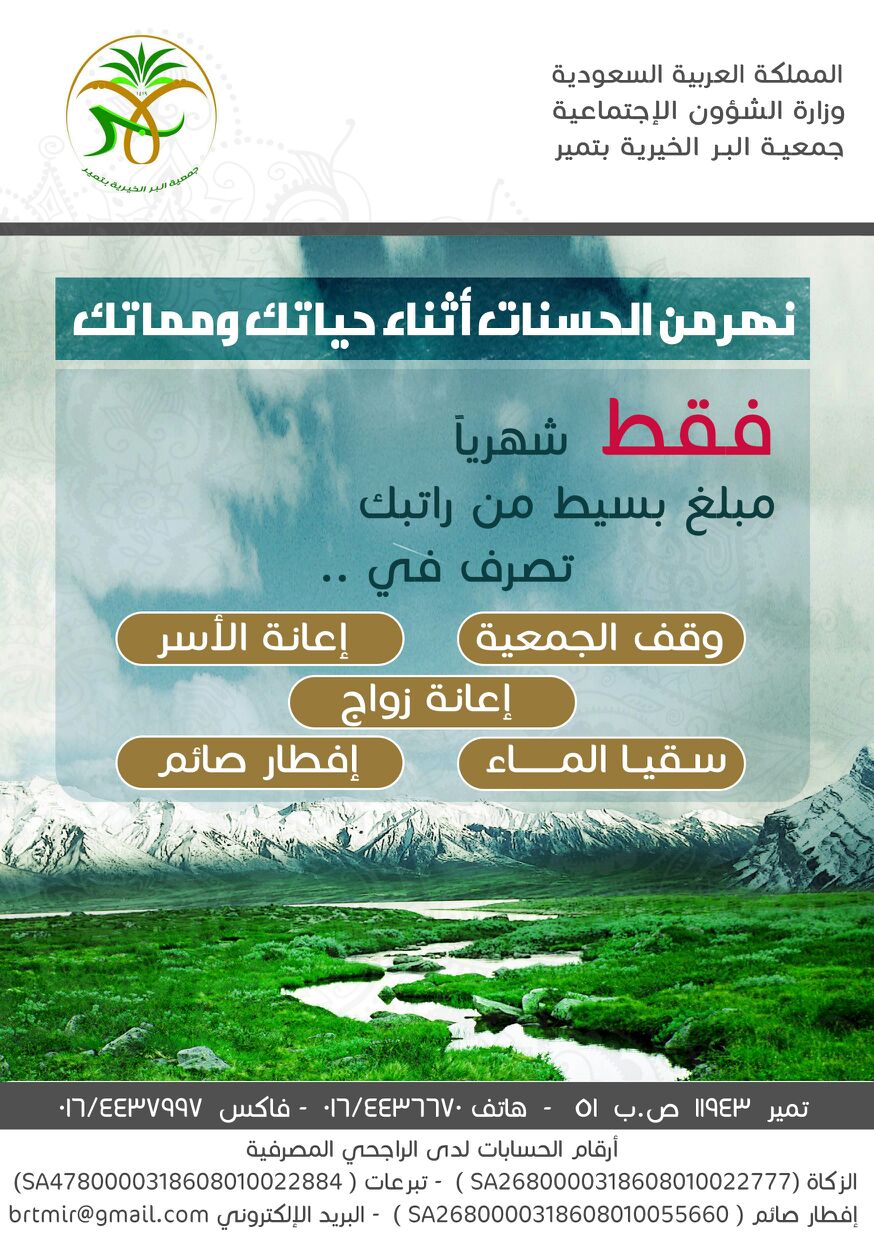 تطلق جمعية البر الخيرية بتمير حملة التبرع بأمر مستديم فئات (50 ـ 100) ريال