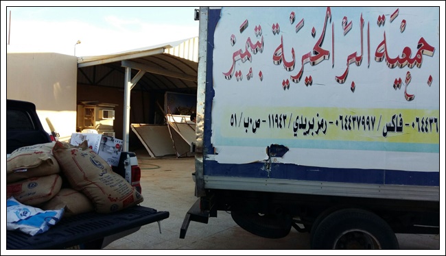 قامت جمعية البر الخيرية بتمير بتوزيع مجموعه من المواد العينية والغذائية