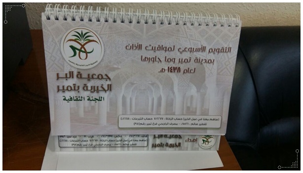 أصدرت جمعية البر الخيرية بتمير ممثلة في اللجنة الثقافيه التقويم الاسبوعي