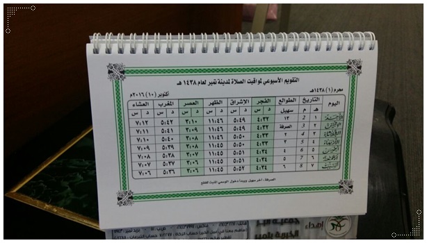 افتراضي افتراضي اصدار التقويم الاسبوعي لمواقيت الصلاة 1438هـ