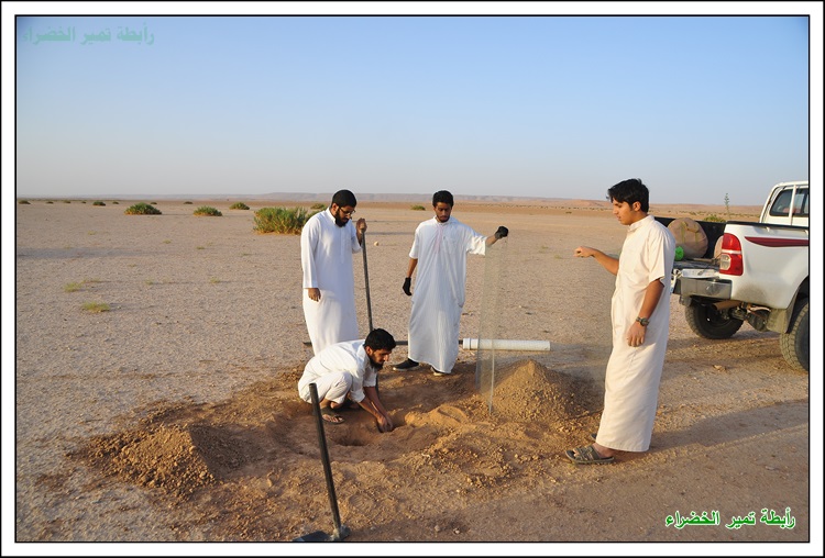بسم الله الرحمن الرحيم السلام عليكم ورحمة الله وبركاتة عَنْ أَنَسَ بْنَ مَالِكٍ قَالَ: قَالَ رَسُولُ اللهِ صَلَّى اللهُ عَلَيْهِ وَسَلَّمَ: " إِنْ قَامَتِ السَّاعَةُ وَبِيَدِ أَحَدِكُمْ فَسِيلَةٌ، فَإِنْ اسْتَطَاعَ أَنْ لَا يَقُومَ حَتَّى يَغْرِسَهَا فَلْيَفْعَلْ " (مسند أحمد) بداية الحملة في 1 / 1 / 1438هـ مع دخول الوسم قام شباب تمير بزراعة أشجار الطلح في براري ومنتزهات تمير لزيادة الأشجار ومكافحة التصحر وللحفاظ على جمال البيئة ونشر الوعي البيئي وحب الطبيعة للغير بدعم مادي مفتوح للسنة الثانية من رجل الأعمال المحب للبيئة / محمد بن عبدالعزيز الحسين وبدعم بأشجار الطلح من الأستاذ / مشرف السلمي صاحب مدونة ابو سامي للطقس والبيئة فجزاهم الله كل خير ولهم منا كل الشكر والتقدير والأمتنان . كما أشكر كل من : الأستاذ / ريس بن علي البرغش . والأستاذ / إبراهيم بن سعود السلطان على ما قدموة لنا من دعم وتشجيع لنا في هذه الحملة المباركة باذن الله فجزاهم الله كل خير . وأشكر الأستاذ / خالد بن حمد الجميل على تبرعة لنا بجهاز حفر لتسهيل وكسب الوقت في زراعة الأشجار فجزاة الله عنا كل خير ووقفة في دنياة وأخرتة . وكل الشكر للأستاذ / حمد بن علي الصبيح على تبرعة لأقامة المناسبة بالأستراحة للرابطة للسنة الثانية فجزاة الله كل خير . كما نشكر الأستاذ / حمد بن عثمان البرغش على تصميم شعار الرابطة وعلى ما يقدمة من لنا من الدعم المعنوي للفريق وكل الشكر والتقدير للمشاركين في هذه الحملة وجزاهم الله كل خير وهم كل من : حملة التشجير جائت على شكل كشتة وسعة صدر وضحك ووناسة وكل يوم عصر نزرع 3 الى 4 شتلات حسب الوقت بسم الله وعلى بركة الله يتم حفر حفرتين وحدة للشجرة والاخرى للماصورة البلاستك 4 بوصة المثقوبة من الاسفل لري الشجرة وحوض واسع بعمق 10 سم وعرض متر تقريباً تركيب الشبك لحماية الشجره الشكل النهائي للشجرة بعد نهاية العمل بيالة شاهي تعدل الراس ونتكلم عن أفكار ونتجنب الاخطاء في المرات القادمة ويبداء يوم جديد يملأة الحماس لزراعة الأشجار بنفس الطريقه السابقة وفي موقع أخر وكل يوم في مكان اخر لزراعة أشجار الطلح في براري ومنتزهات تمير يوم جديد ومكان جديد وانضمام شباب جدد كل يوم وللصغار مشاركة معنا البسملة اثناء غرس الاشجار وفي كل بداية تركيب الماسورة البلاستك لري الشجرة من الأسفل العمل بروح واحدة تجهيز الشاهي فيما ينتهون الشباب من باقي الاشجار صورة جماعية وجلسة شرب الشاهي ومن يوم الى يوم ومن مكان الى أخر يزراد حماس الشباب لزراعة الاشجار زراعة الشجرة الاخرى في نفس الموقع يوم يتلوة يوم يزداد التوسع في المنطقة لزراعة الاشجار البرية في المنتزهات ضحك ووناسة وعمل بروح عالية الله يطرح فيها البركة الجلسة النهائية للشباب بعد نهاية العمل ولتحديد موقع أخر في الغد لزراعة أشجار فيه وفي موقع اخر من المواقع التي انقطعت فيها الاشجار نزرعها ونحيها باذن الله مادام عملنا لوجهه الله العمل على جهاز الحفر المقدم من الأستاذ / خالد الجميل لشباب تمير وتجربتة في هذه الحملة فقد وفر لنا الوقت والجهد فجزاة الله كل خير أجتماع فريق التشجير التطوعي بتمير وتحويل الفريق الى رابطة تمير الخضراء ونتمنى من الله التوفيق لنا في أعمال الخير صورة جماعية لأعضاء الرابطة قص الترتة بأعلان الرابطة أجتماع بعض أعضاء الرابطة مع رئيس بلدية تمير الأستاذ / محمد بن سعود السلطان وتم تكريم أعضاء الرابطة ومناقشة بعض الأمور التي تهتم بالمنتزهات البرية والمتنزهين مونتاج لزراعة الاشجار في براري ومنتزهات تمير .................................................. ........ ذكر لنا انه يوجد مادة أسمها ( البوليمر ) تساعد على تخفيض أستهلاك الماء ومضاعفة الانتاج وتستوعب ضعف حجمها من الماء بما يقارب 400 الى 600 وتعمل تحت التربة لمدة 8 الى 10 سنوات وجربناها وفي انتظار النتائج وهذا مقطع من مونتاجنا لها .................................................. ......... فديو : شباب تمير يقومون بتركيب شبوك على الاشجار التى كبرت وضاق عليها الشب