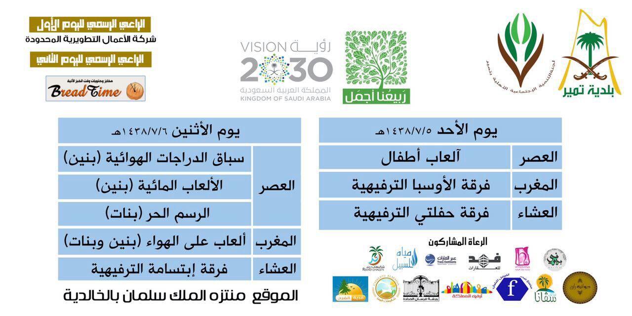 جهود رائعة يشكرون عليها لجنة التنمية الاجتماعية الاهلية القائمة على تنظيم هذه الفعاليات بتمير والشكرموصول ايضا لبلدية تمير والرعاة الرسميين لهذه الفعليات الذين يأملون من وراء ذلك إسعاد ورسم البسمة على شفاه اطفالنا احبابنا خلال هذه الاجازة