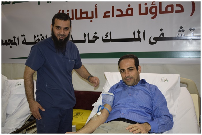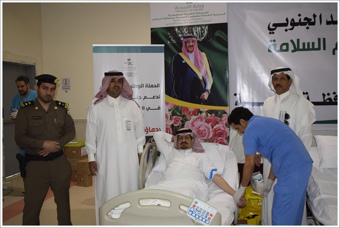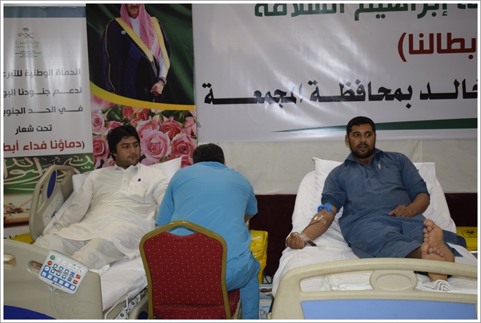 دشن وكيل مركز تميرالأستاذ جاسر الجاسر، حملة التبرع بالدم بالقاعة الرئيسية بمستشفى تمير العام ضمن برنامج الحملة الوطنية للتبرع بالدم لدعم الحد الجنوبي تحت شعار( دماؤنا فداء أبطالنا ) التي ينفذها مستشفى تمير العام، بالتعاون مع بنك الدم بمستشفى الملك خالد بمحافظة المجمعة بحضور مدير المستشفى الأستاذ بجاد الحمراني , وشهدت الحملة تفاعلًا كبيرًا وحرصًا من الجميع الذين تسابقوا للتبرع بدمائهم في أقوى صور التلاحم وتلبية نداء الوطن وتوفير كل ما يهم الوطن والجنود البواسل المرابطين على الحد الجنوبي .