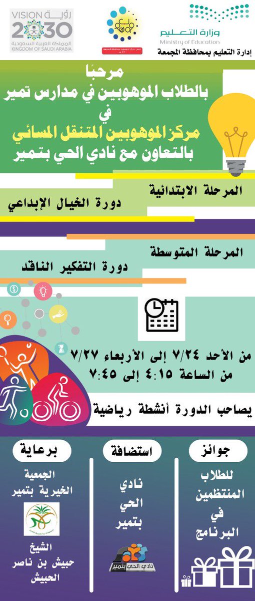 افتراضي أختتام دورة الموهوبين بنادي الحي بتمير برعاية الجمعية الخيرية بتمير