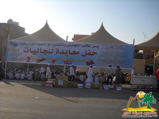 في العيد الكل منا يفرح مع اهله وذويه ...  و لكن يبقى من الجاليات المسلمة في تمير من يفقد اهله وذويه ،   فانطلقت من الجمعية والمكتب فكرة الاجتماع بعد صلاة العيد لاسعاد هؤلاء ، وتناول وجبة افطار العيد الجماعي لهم مع حلوى العيد وبعض الكتيبات الدعوية ، وذلك بحضور اكثر من 1000 شخص من مختلف الجنسيات المسلمة ولعل الصور تتحدث اكثر واكثر  عيدية المكتب التي تم توزيعها بعد المعايده  وفي الختام نقدم شكرنا الجزيل لبلدية تمير على تعاونها في انجاح المعايده فلهم منا جزيل الشكر والتقدير ...
