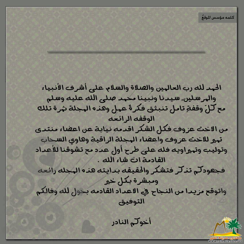 اول شي احب اهنيككم على هذي آلمجله وبإصدارهآ الآول وطرحكك بموآضعيكم حلو ومميز للغايه يعطكيم آلعوآفي مآقصرتوآ أستمتعت بهآ حيل وعسآنآ مآننحرم , ![]() ![]()  |