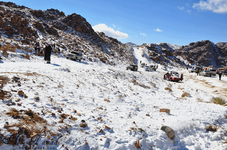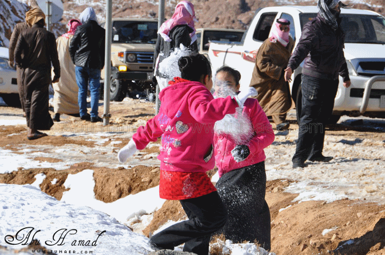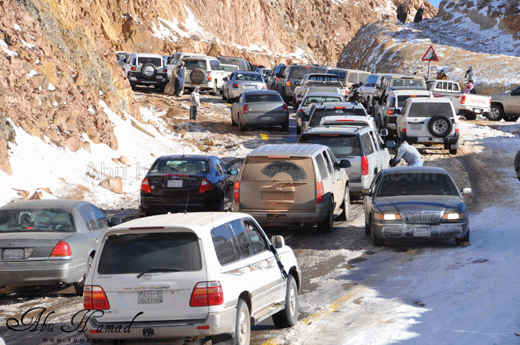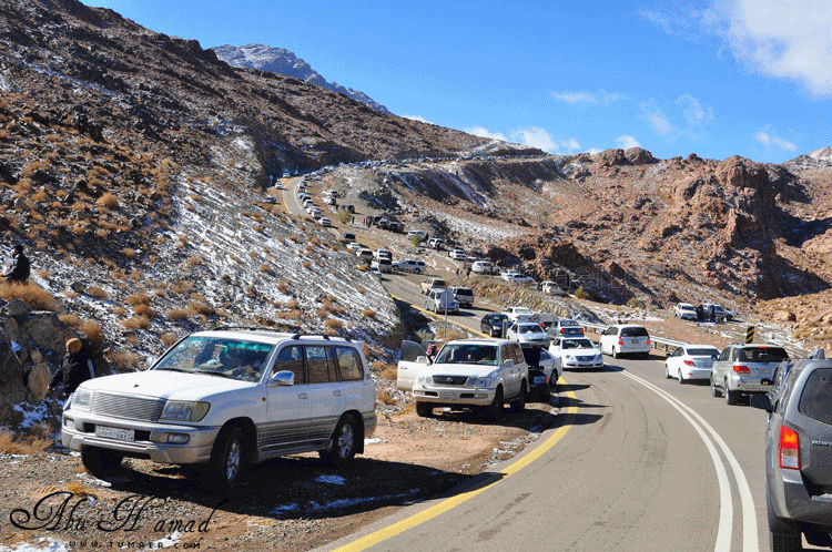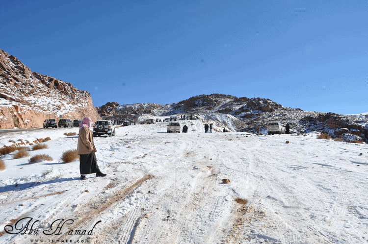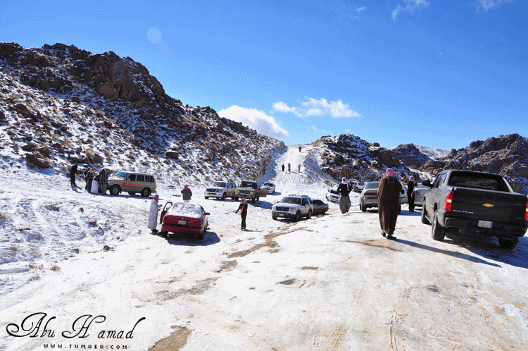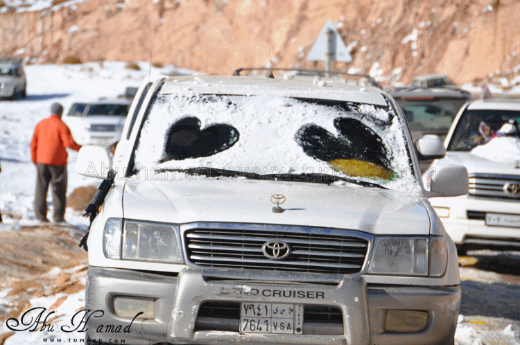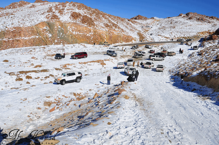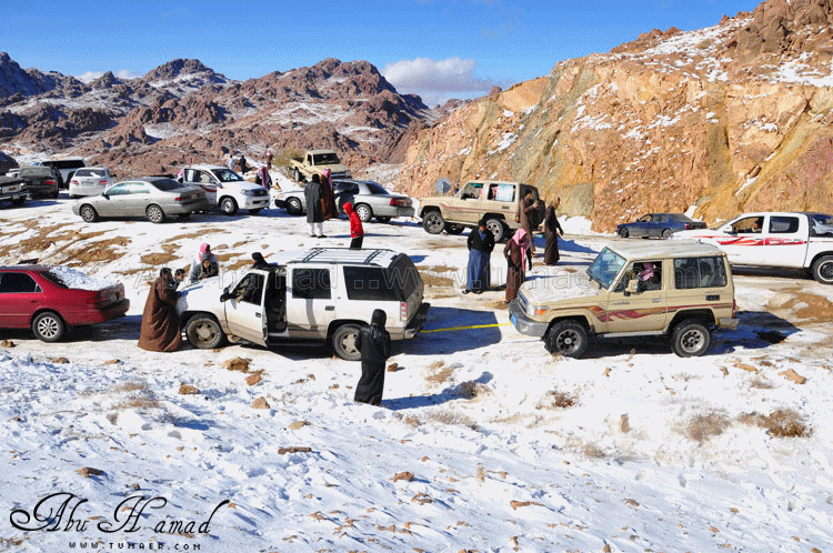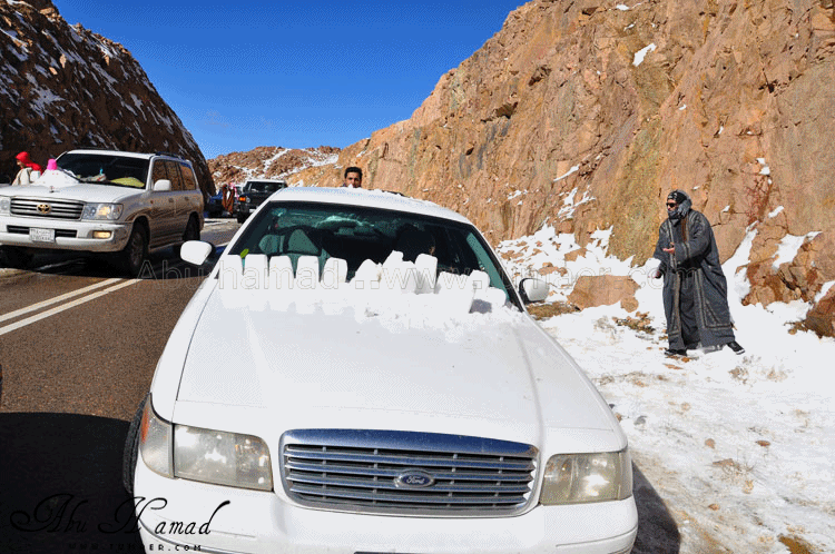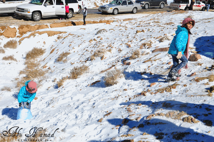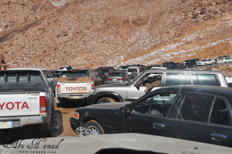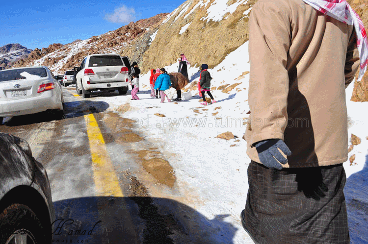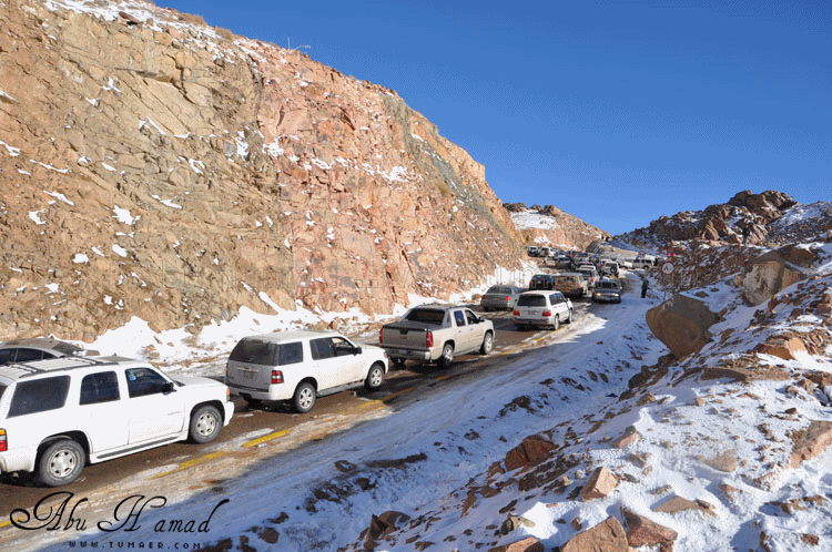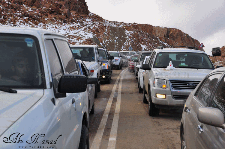 والحمد لله رحت له وشفته على الطبيعه.. كان احسن من الي تصوورته كان جميل جداَ ومكسو بالبياض .. وكانت درجه البروده فيه تاصل الى 6 تحت الصفر الى 7 تحت الصفر نهارا .. المسافه تقريبا 1600كيلومن تمير 150 كيلو من تبوك.. 100 كيلو من حقل واهم شي تغيررر جو.. كانت في 28/ 2 / 1434هـ في جبل اللوز وفي يوم 29/ 2 / 1434هـ كانت لقريبه علقان حيت تساقطت عليها الثلوج بغزاره ليله الجمعه.. اترككم مع الصور ... $$$$ الوصول الى الجبل والزحمه واضحه وتأهب من الدفاع المدني وايضا وجود فرق كبيره من دوريات الامن تحسب لأي ضرر او مشاكل مع ذوبان الثلج .. ومراقبه من فوق الجبل بالهلوكبتر.. الصعود الى الجبل.. ازدحام شديد وجاري معرفه السبب,, اولها توقف السيارات من يمين ويساار ونزول العائلات للتمتع والترفيه واللعب بالثلج... تم التوقف قليلاَ لكي تخف الزحمه لكن الزحمه تزداد شياَ فشياَ والسبه السيارات الصغيره وتزحلق السيارات على بعضهاااا من الثلووج,, قررنا الطلوع من جانب الطريق .... حااله زحلقه ثم ارتطاام بسياره اخرى ثم في الجبل كان الله بعونهم... عائله لم يتمالك صاحب السياره من سيارته وتمت الزحلقه بجانب الجبل ,,, فزعه الشباااب واخراجهااا بعد جهد وطوول انتظاااار وقرر صاحبها النزول الى اسفل الجبل لسلامته وسلامه عائلته... سياره اخرى تزحلقت وحاول صااحبها ارفادها بالحجررررر... اللعب بالثلج ووضع تماثيل فوق السيااره.. ورغم ارتفاع درجه البردوه لتصل الى 6 تحت الصف الا ان الوضع صار عادي وتم اشعال الناااار والي ما معه شااخوووف مهيب شابه ضوه بالسهل... وشرب شاااهي من ماء الثلج ومن يد ابو سعد ... ياا سلام شاهي له نكهه خاااصه ماله مثيل .. ![]() شخمطه وشخاااميط .. تم وضع تمثااال على الشاص مثله كمثل غيره ![]() الاطفال فرحين بالثلج .. الصوره هذي عجبتني الصراحه حاطين ابنهم فوق الثلج ويلاعبووونه.. بعد طوول انتظار لم نقدر التسلق الى فوق وذالك لسبب تزلق السيارات على بعضها قررنا التسلق على رجلينا والمسافه لا تبعد عن 100 متر تقريبا من مكاننا.. |