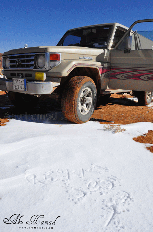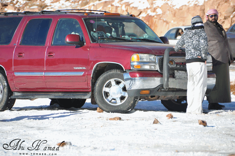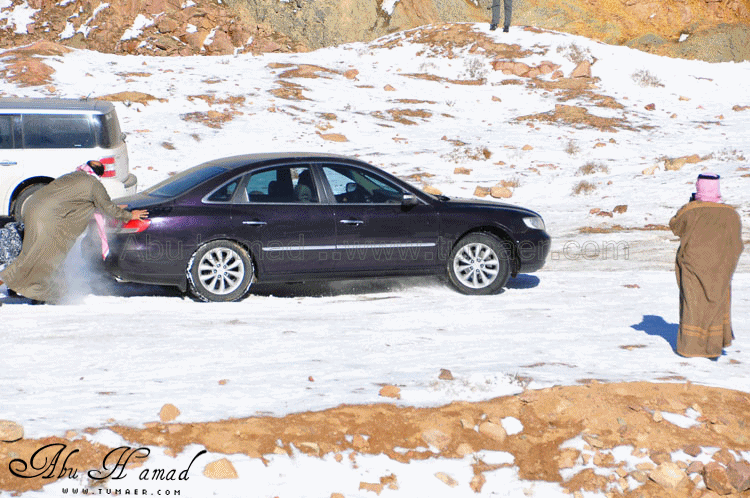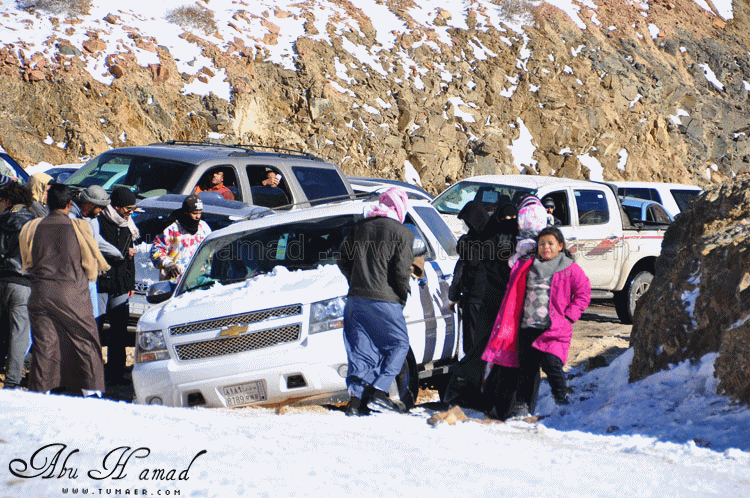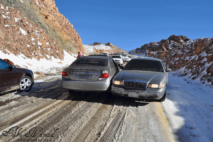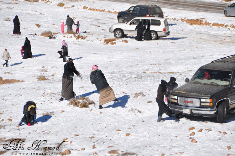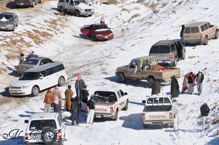تم الوصول الى المنطقه المراد الوصول اليهااااا.. نااس تتزحلق من فووووق على صاج حديد,,, وناااس منزله عفشهاااا وتسوي غداهااا فوووق الثلوج... وانا هنا اللعب في الثلج .. هنا بعض السيارات واقفه ولم تسطع الحركه من الصباح لأنزلاقهاااا ... محاوله تزلق... الجو كان جميل ولا توجد عواااصف رغم برودته محاوله سحب لسياااره علقت في الثلج.. محاوله فاااشله في الخروووج!! وهنااا محاوله دف للخروج من الثلج قبل ان يأتي احد وتتسحلق به سيارته وترطم فيه.. ابوسعد ونظره ترقب.. لازال الاطفال يلعبون بالثلج .. تعليقه اخرى وتوهيقه ما بعدها توهيقه انزال العااائله ودف من الشباب الله يجزاهم خير... زحلقه السياارات على بعضهاااااا والاصطدااام وعدم السيطره عليها نهااائياَ.. اللعب بالثلج هوااايه جميله... |