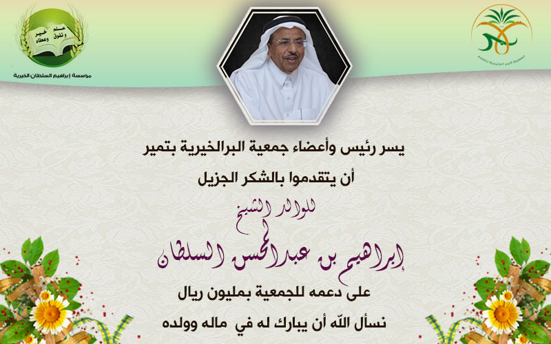 افتراضي الشيخ إبراهيم بن عبدالمحسن السلطان يدعم الجمعية بمليون ريال