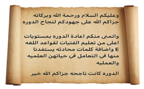 بارك الله الجهود والله يجعلها دورات خير وتعود على الجميع بالفائده والخير