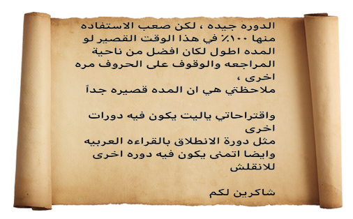 جهود ملموسه تشكر الجمعية والقائمين على الدوره