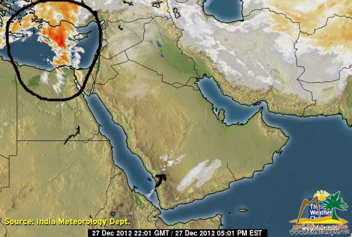 بحول الله تعالى من اليوم وخلال الايام القادمة هناك مرتفع قوي مسيطر سيطرة تامة على الجزيرة العربية .وندخل في فترة الصقيع والرياح الشمالية والعوالق الترابية باسباب الثلوج شمال المملكة روسيا وشمال وهذا طبيعي بحول الله تعالى .