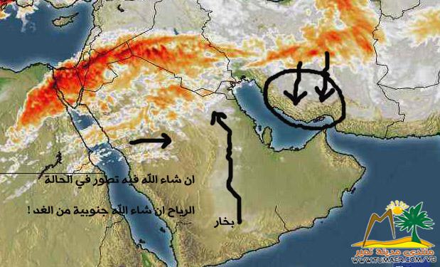 احسن مانبي مطر في الاجازة الان السحاب شمال شرق المملكة وبدأ السحاب يتجه جنوب ايران كما ذكرنا البارح ونتمنى من الله يكون بخار بنسبة عالية الرياح جنوبية ان شاءالله تتطور الحالة ونشاهد الامطار شكرا الراقية على متابعتك |
