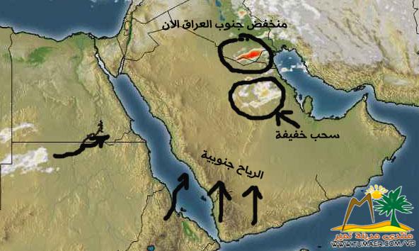 بحول الله تعالى سحب خفيفة على المنطقة الوسطى وشرق المنطقة الوسطى .بمشيئة تعالى نسبة بخار الماء قليلة جدا وهذا ما حدث الايام الماضية . |