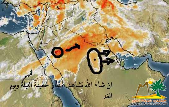 يتوقع الخبراء ان يكون هناك نشاط في الرياح السطحية تحد من مدى الرؤية الأفقية على مناطق شمال وغرب المملكة تمتد حتى أجزاء من وسط وشمال شرق المملكة. وسماء غائمة جزئياً على أجزاء من مناطق شمال غرب المملكة تشمل ( تبوك – طريف – الجوف ) ومكة المكرمة والمدينة المنورة والمرتفعات الجنوبية الغربية والغربية. تمتد حتى أجزاء من وسط وشرق المملكة. ولا يستبعد هطول أمطار على تلك الأجزاء. والفرصة مهيأة لتكون الضباب في ساعات الليل والصباح الباكر على أجزاء من شمال وشرق المملكة. واليكم بيان بدرجات الحرارة المتوقعة على مدن المملكة المدينة العظمى الصغرى مكةالمكرمة 28 17 المدينة المنورة 19 12 الرياض 20 9 الدمام 23 11 جدة 26 17 أبها 20 9 حائل 14 3 بريدة 19 8 تبوك 16 5 الباحة 21 9 عرعر 14 4 سكاكا 16 5 جازان 31 23 نجران 30 13 الخرج 19 9 الغاط 20 10 المجمعة 20 10 القويعية 21 11 وادي الدواسر 21 13 الدوادمي 19 10 شرورة 29 12 طريف 12 2 الزلفي 19 10 شقراء 20 11 حوطة بني تميم 21 13 الأفلاج 21 13 الطائف 22 10 القنفذة 28 19 رابغ 25 15 ينبع 24 13 العلا 17 6 عنيزة 19 9 الرس 19 10 المذنب 18 8 البكيرية 18 8 السر 19 10 الأحساء 24 11 حفر الباطن 18 8 الجبيل 22 11 العبيلة 24 12 شوالة 24 12 سلوى 24 12 خرخير 30 15 الحويصات 25 12 رأس ابوقميص 25 13 خميس مشيط 21 9 بيشة 23 11 النماص 20 8 محايل 31 21 بقعاء 12 5 الوجه 23 13 ضباء 20 11 تيماء 14 8 بلجرشي 23 11 المندق 23 10 المخواة 29 17 رفحا 15 6 القريات 14 3 طبرجل 13 2 صبيا 30 22 أبو عريش 30 22 صامطة 31 23 الطوال 32 23 قرية 18 9 |