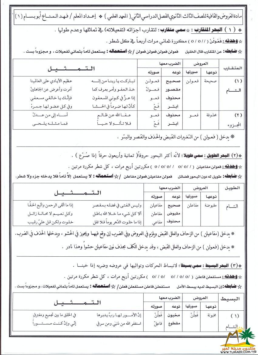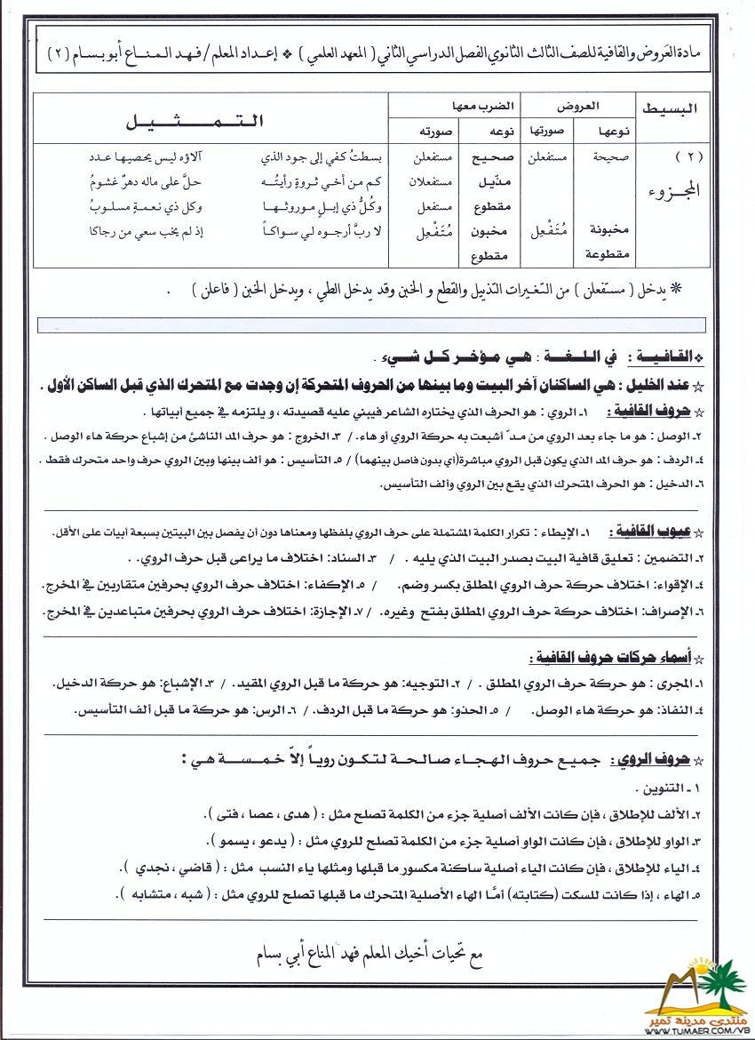 تطبيقات في مـادة العروض والقافية لـلـصــف الثلث الثانوي ( المعهد العلمي) الفصل الدراسي الثاني ( التطبيق الثاني ) : |