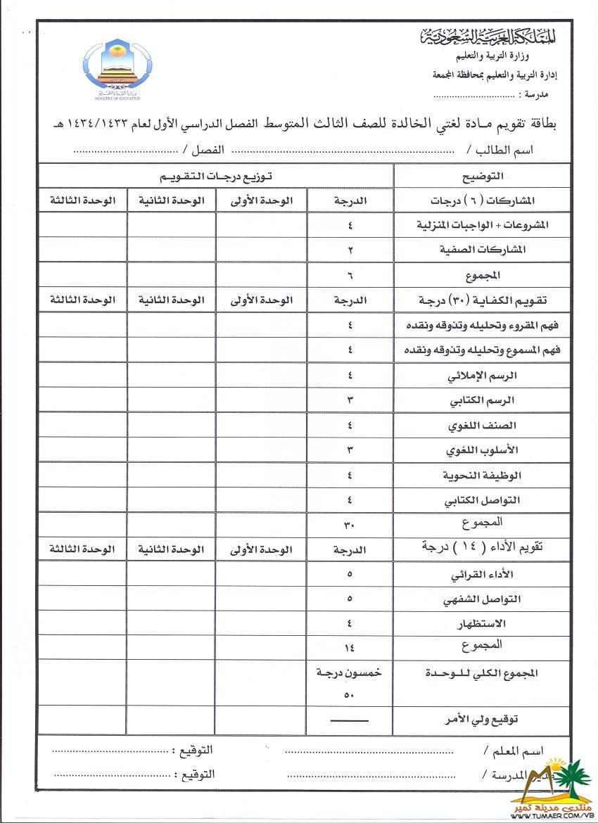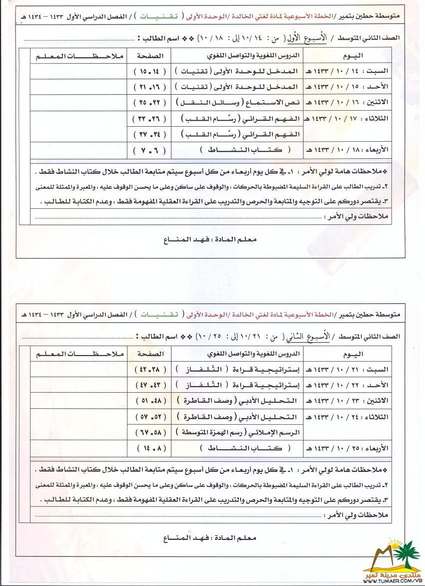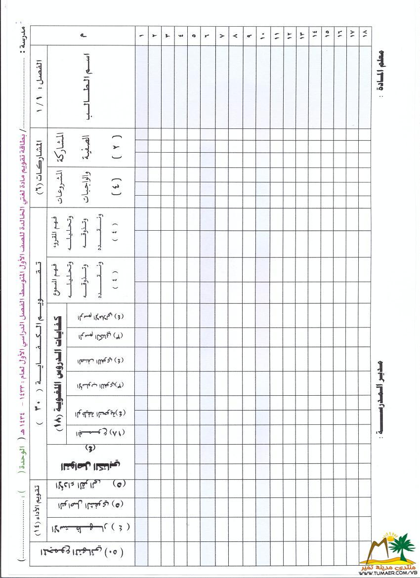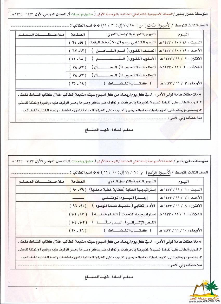 يطيب للمعلم فهد المناع بمدرسة حطين بتمير ويسره أن يقدم سجلات متابعة لمادة لغتي الخـالـدة للمرحلة المتوسطة للفصل الدراسي الأول ( 1433 ـ 1434 هـ ): |