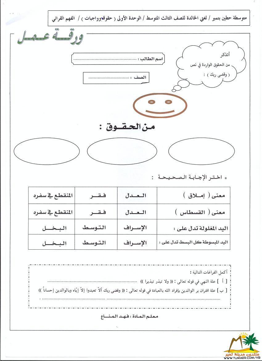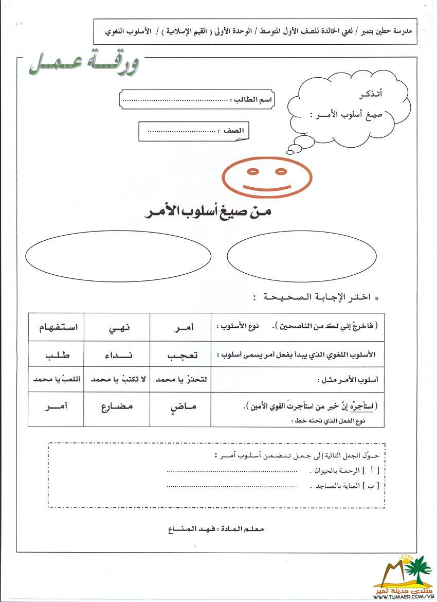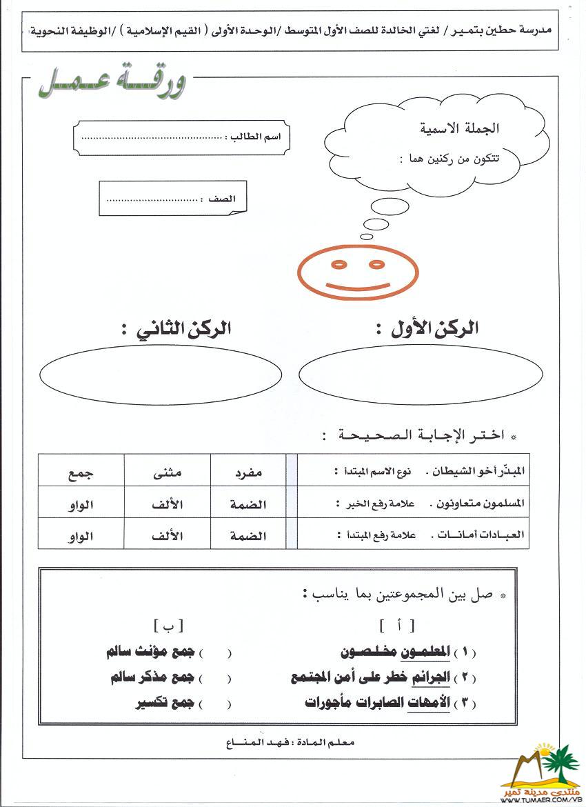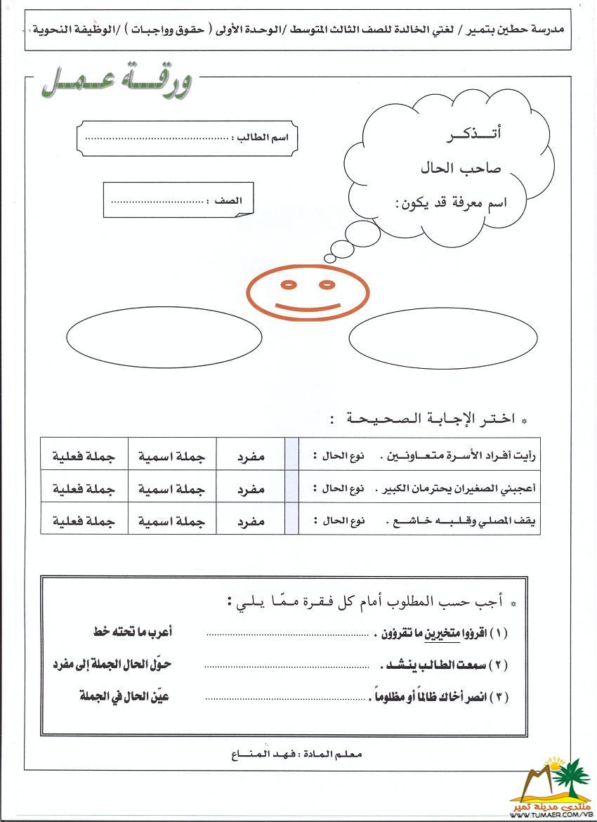 أوراق عمـل للوحدة الأولى لمـادة لغتي الخـالـدة للصف الـثـالـث المتوسط للفصل الدراسي الأول ( 1433 ـ 1434 هـ ): |