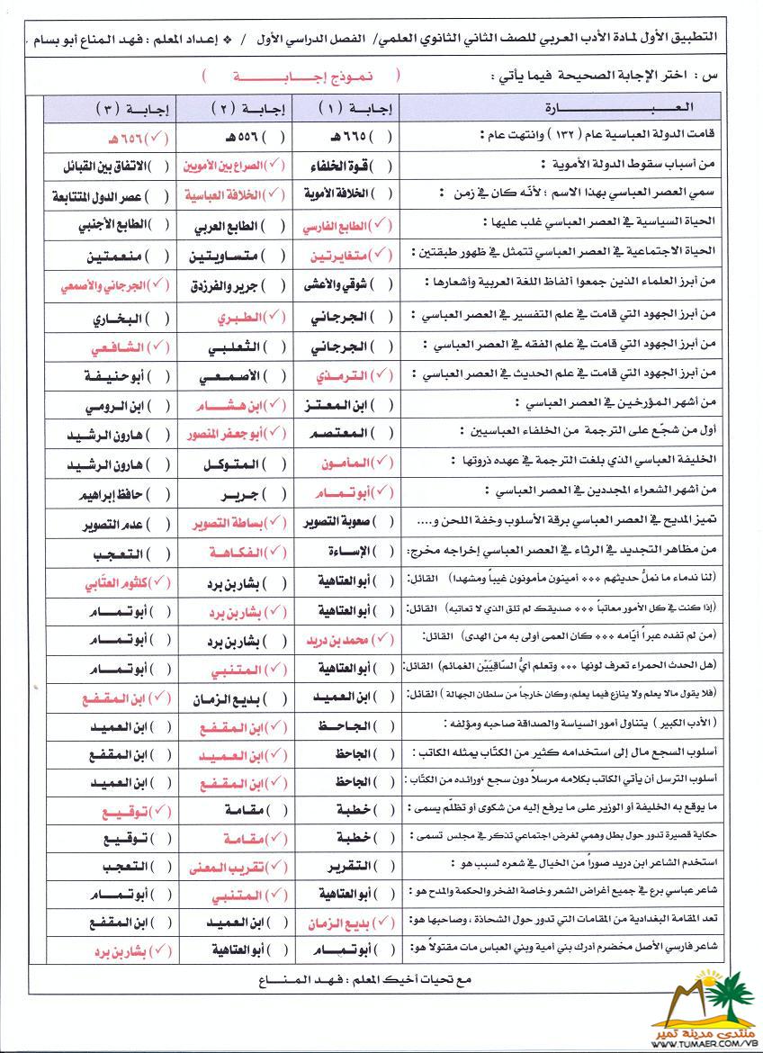 الصف الثاني الثانوي ( العلمي والطبيعي) الفصل الدراسي الأول ( الثانوية العامة ـ بنين وبنات ) تطبيقات في مـادة الأدب العربي: |