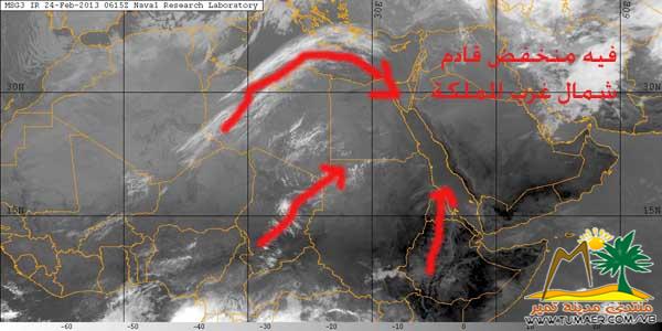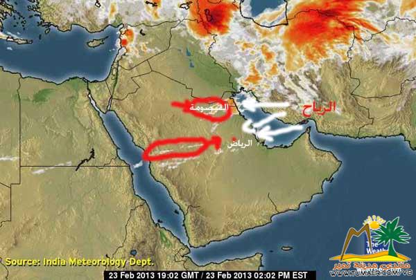 الان فيه سحب غرب وكنت متوقع ان الرياح تبي تتغير شرقية شمالية بحول الله لكن صور الاقمار تختلف كل ساعة ،ونحن في وقت لايمكن رصد السحاب اللي في حالة وصوله . ان شاءالله ننزل صور الحركة |