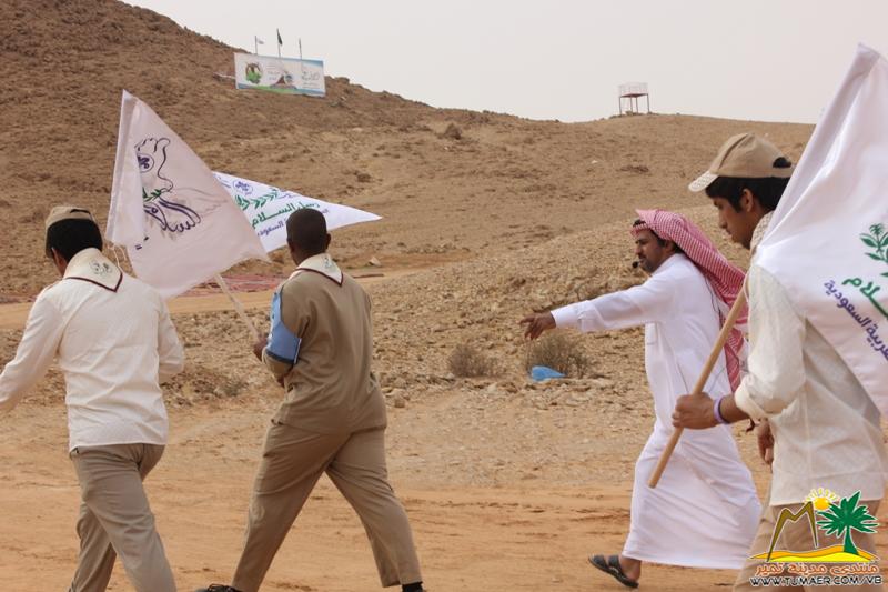 رعى صاحب السمو الأمير فيصل بن عبدالله بن محمد وزير التربية والتعليم رئيس جمعية الكشافة العربية السعودية وبحضور محافظ المجمعة سمو الأمير عبدالرحمن بن عبدالله بن فيصل حفل ختام البرنامج الوطني الكشفي لنظافة البيئة وحمايتها في نسخته الرابعة الذي تنظمه جمعية الكشافة العربية السعودية تحت شعار ''النظافة من الإيمان حماية للإنسان وتنمية للمجتمع'' في روضة حطابة في محافظة المجمعة . وفور وصول سموه مقر المخيم في روضة حطابة قام بجولة على المعرض المصور للبيئة المقام ضمن فعاليات البرنامج بمشاركة مجموعة من المصورين الفوتوغرافيين وعدد من الجهات والهيئات الحكومية ومنها مدينة الملك عبدالعزيز للعلوم والتقنية وبيت الشباب بمحافظة المجمعة واستمع لشرح مفصل عن المعرض من القائمين عليه , بعد ذلك توجه لموقع الحفل وقام بتكريم الفرق الفائزة في مسابقات المخيم وجمعية الكشافة العربية السعودية وتكريم المؤسسات والدوائر الحكومية المشاركة في البرنامج , ثم بدأت فعاليات الحفل الخطابي المقام بهذه المناسبة بتلاوة آيات من القرآن الكريم , ثم قدم نائب رئيس جمعية الكشافة العربية السعودية عبدالله بن سليمان الفهد شرحاً مفصلا عن البرنامج وعن رسالة رسل السلام في قالب يحكي تراث المنطقة بمشاركة أعضاء من المنظمة العربية للكشافة والجمعية الكشفية العالمية وأمين عام منظمة البيئة العالمية وأصدقاء رسل السلام من السلفادور ونيكارجوا وأوضح الفهد أنه تم رفع أكثر من( 110 ) طن من المخلفات وتشجير أكثر من( 1000 )شتلة خلال فترة البرنامج في محافظة المجمعة وأكثر من( 600 ) طن على مستوى المملكة خلال الثلاثة أشهر الماضية , ثم بدأت فعاليات الأوبريت والفقرات الإنشادية للحفل والتي نالت إعجاب الحضور , بعد ذلك قام سمو الأمير فيصل بن عبدالله بن محمد وزير التربية والتعليم رئيس جمعية الكشافة العربية السعودية بتسليم الراية الخامسة للبرنامج الوطني الكشفي لنظافة البيئة وحمايتها لمدينة الجبيل الصناعية المستضيف القادم , ثم أخذ سموه الصور التذكارية مع الكشافة
