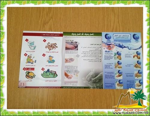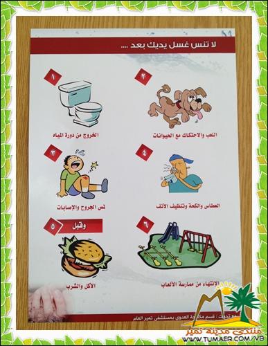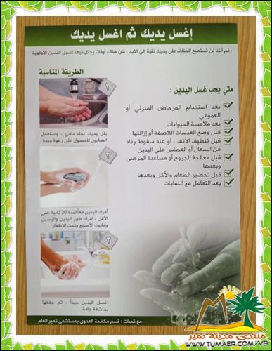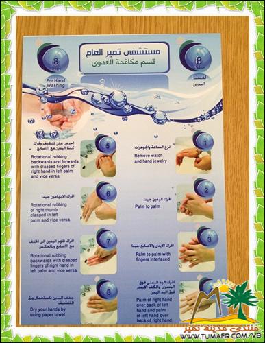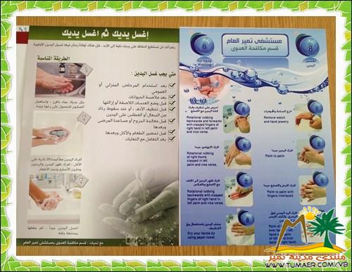 بمناسبة اليوم العالمي لغسيل اليدين ( 5 مـايـو ) أقـام قـســم مكـافـحـة الـعـدوى بمستشفى تمـير العام يوم السبت الموافق : 14 / 6 / 1433 هـ بـــرنــــامــــج عــنـــوانـــــه الـيــوم الـعـالمـي لـغــسـيــل الـيــديـن بـمــدرســة حــطــــين بـتـمــير أشرف على البرنـامـج الأسـتـاذ خالد المحـيـذيــف والأسـتـاذ جـزاع الـمــطــيـري والمـنـسـق بـالـعــلاقــات الـعـامـة الأسـتـاذ خـالـد الـبـرغــش بـالـتــعــــــــــاون بـيـن قـسـم مكـافـحـة الـعـدوى بـالـمـسـتـشـفـى وبـيـن الـنــشــاط الـطــلابـي بـالـمـدرســـــة بـإشـراف رائــد الـنـــشــــاط الأستاذ القدير فهد بن ناصر المناع ومساعده الأستاذ القدير عبد العزيز بن سلطان الريس والمرشد الصحي بالمدرسة الأستاذ القدير محمد بن علي العريني . حيث تـم التعريف بالبرنامج بأهمـيـة غـسـل الـيـديـن بـالمــاء والـصـابـون وتـوزيــع الـبروشـورات عـلـى طـــلاب الـمــدرســــــة ، ووضـــع بــنــر لهــذا الــبـرنـــامــــج الـعــالمـــي . والله الموفق