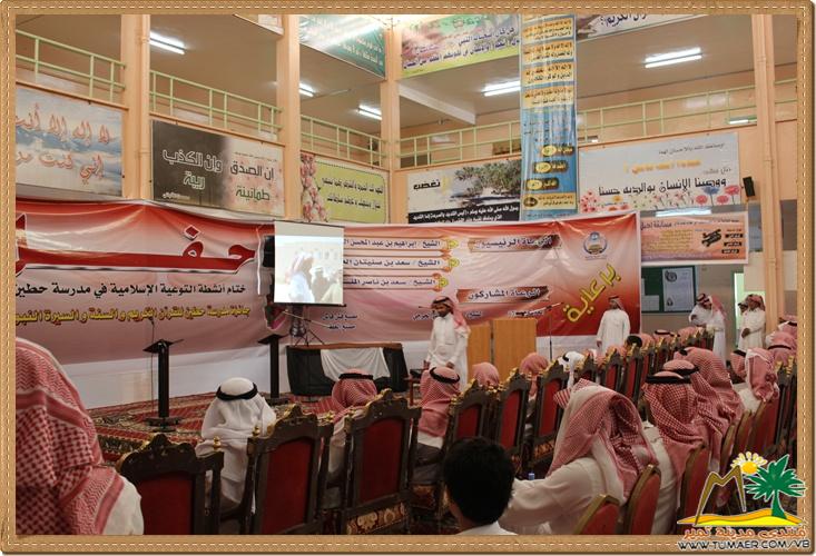 حفل رائع ومميز ابدعت فيه مدرسة حطين وقدمت صورة مميزة ومشرفه لهذه المدينة اشاد بها نائب مديرالتربية الدكتور عبدالعزيز العبدان ومدير مكتب التربية بتمير الاستاذ محمد المناع ورئيس قسم التوعية الاسلامية بالادارة الاستاذ عبدالملك بن الامير
