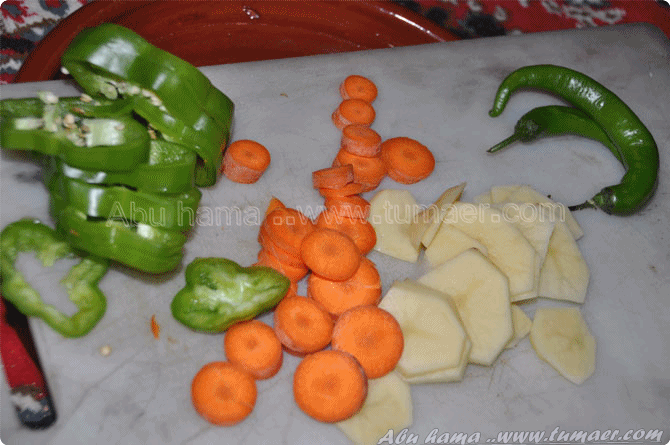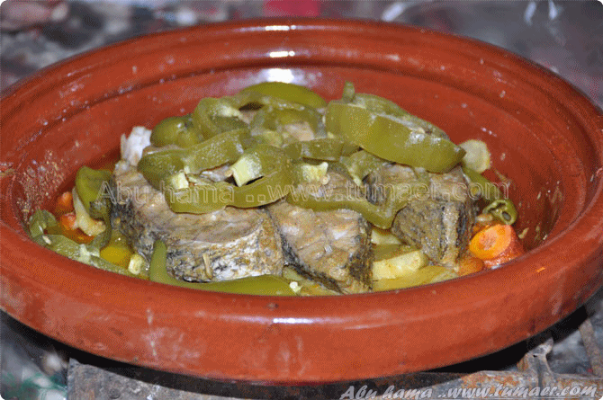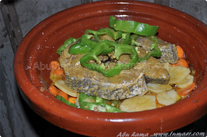 قالوا الشباب نبي سمك على الصاج قلت اجل فرصتي اجرب الطاجين المغربيه على السمك .. المهم جبتهااا واليكم المقادير... 4قطع سمك ويفضل الهامور<< قالوا ماالك الا اربع حباات بسسس وحبتين من الجزر وحبتين من البطاطس وتقطع شرائح صغيره حتى تتمكن من الاستواء وحبتين من الفلفل الحار وحبة من الفلفل الاخضر قليل من زيت الزيتون وحبه من الطماطم ان اردت ان تضيفها والا ماايحتاج .. طريقة التحضير تتبل قطع السمك بالبهارات ثم توضع جانبا . تقشر الخضروات و تقطع على شكل دوائر تم تصفف في الطاجين و توضع فوقها قطع السمك و تزين بقطع الفلفل الاخضر ثم الزيتون و توضع على نار هادئة لمده 35 دقيقه حتى ينضج .. نبتداء اول بالطاجين وتقطيع الخضروات على القطاعه و لا تدققون فيها ترها حقت عزبه بر ![]() السمك بعد تتبيله بالبهارات والملح.. وضع الخضروات تحت والسمك فوقها ملاحظه لا تضع فيه ماء اكتفي فقط بوضع باقي ما تبقى من ماء التتبيله .. وبعد مرور خمس دقاايق اخونا ابو عبد الله كل شوي يفتح القدر يقول طريقتك ماارح تضبط... وانا اقوله انتظر وراااح تشووف النتيجه... وبعد 35 دقيقه ... النتيجه كانت ... 7 7 7 7 7 7 7 7 تركو سمكه الصاااج واتجهو لسمكه الطاجه... وهذي طريقه قلي السمك على الصاااج زيت زيتون ووضع السمك المتبل لمده عشر دقايق الى 15 دقيه وتقلبه حتى يتحمر.. اغلبنا يفضل الحمص مع المشوووي... وماارح ننسى التبوووله ايضاَ فلها نكه خاااصه مع المشوووي.... والى اللقاء ... ![]() |
