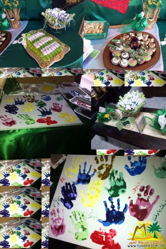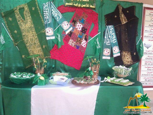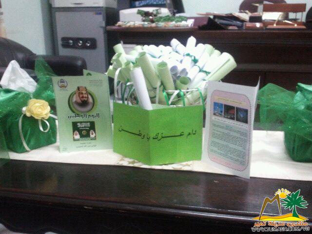 بسم الله الرحمن الرحيم الحمد لله رب العالمين والصلاة والسلام على أشرف الأنبياء والمرسلين الحمد لله الذي أدام علينا نعمة الأمن والأمان مع مطلع كل فجر وإشراقة كل شمس نجدد الولاء لك أيها الوطن الغالي فبترابك الطاهر امتزجت دماء آبائي وأجدادي نعم يا مملكة العطاء لقد شغفت قلبي حباً مع إشراقة يوم الثلاثاء 9\11\1433 أقيمت فعاليات اليوم الوطني الذي احتوى على عدد من البرامج والفعاليات التي تخص هذه المناسبة عبرت فيه الطالبات عن مشاعرهم تجاه الوطن وقد اشرف على التنظيم والتنسيق إدارة المدرسة ومشرفة النشاط بالتعاون مع منسوبات المدرسة والطالبات فلتبق يا أغلى وطن شامخا حفظك الله من كل مكروه وحفظ لك حماة عزك ورعاة مجدك |
