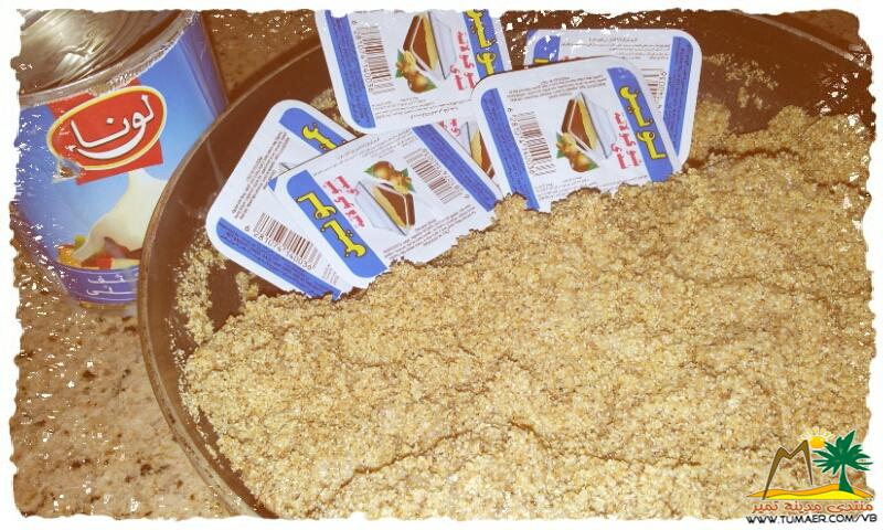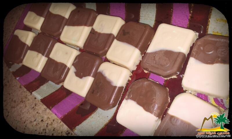 سميد محموس +نستلة + شوكلاتة لونا او ندى بعدين نثلج الشوكلاتة بعد فتحها وبعد خلط السميد مع النستلة نضعة فوق الشوكولاتة ونضعة بالفريز ونطلعة من البلاستيك وبالعافية.. |