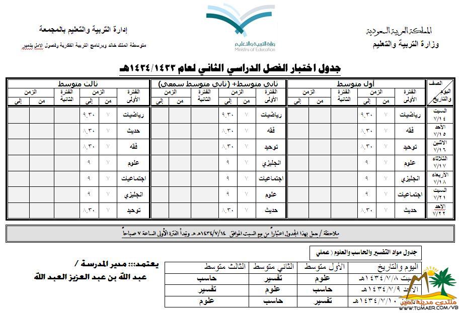 افتراضي رد: الجدول النهائي لاختبار الفصل الدراسي الثاني للعام1434/1433